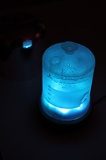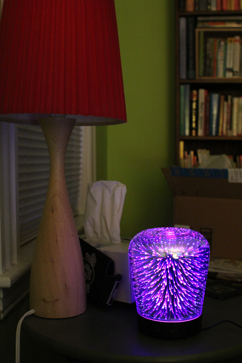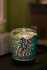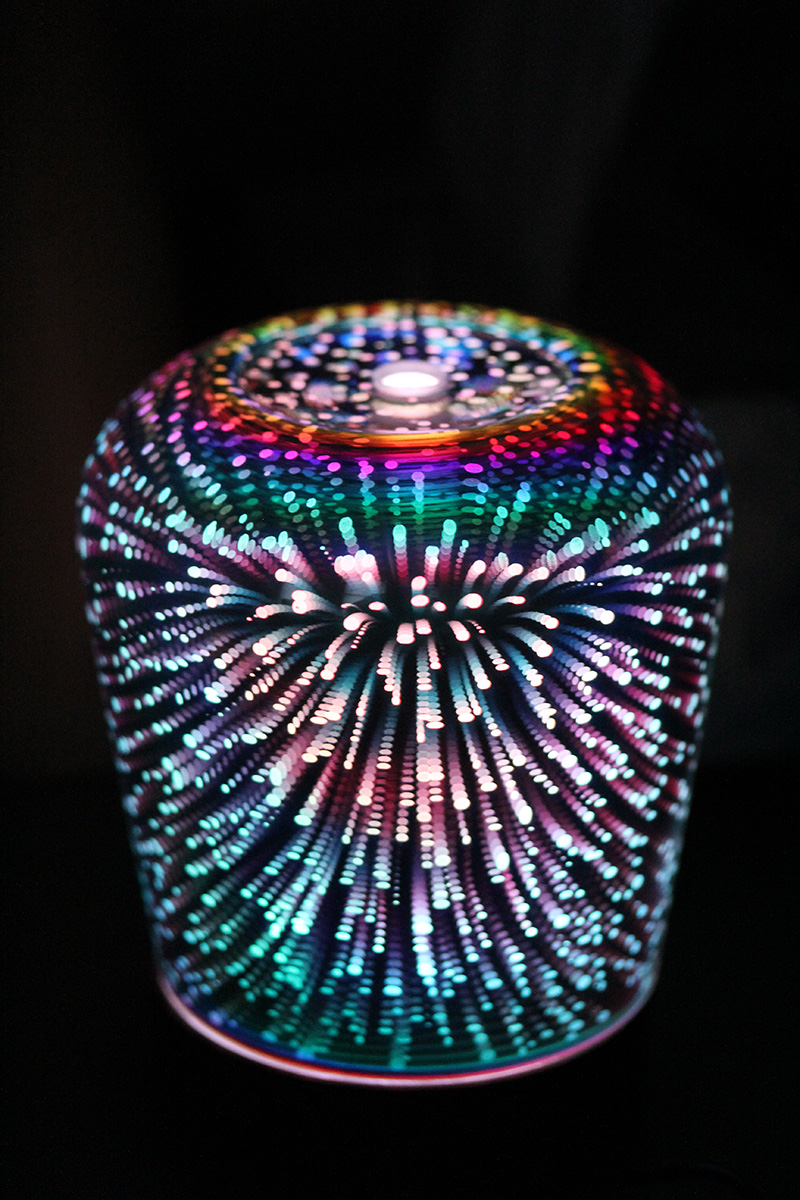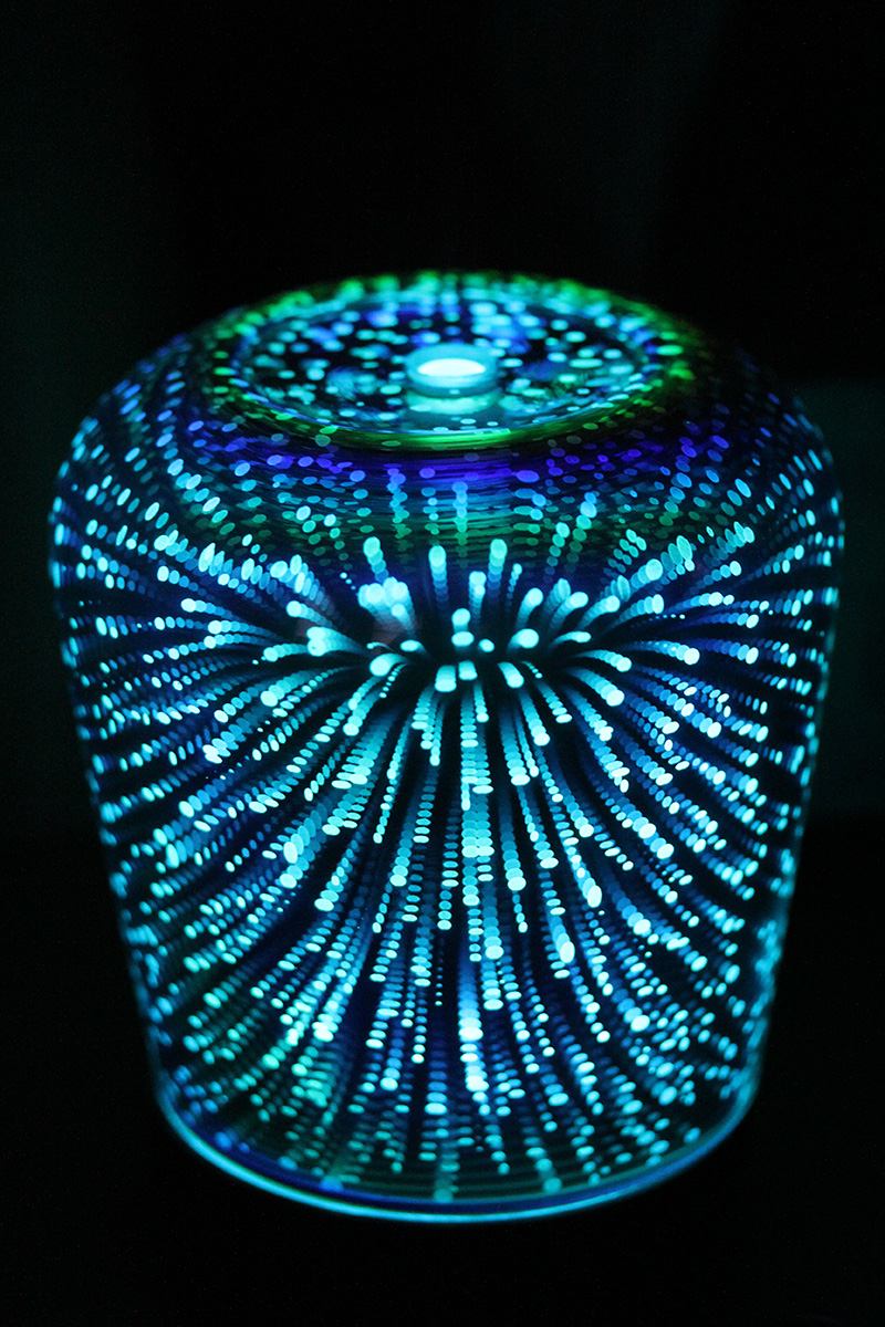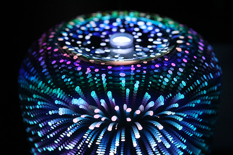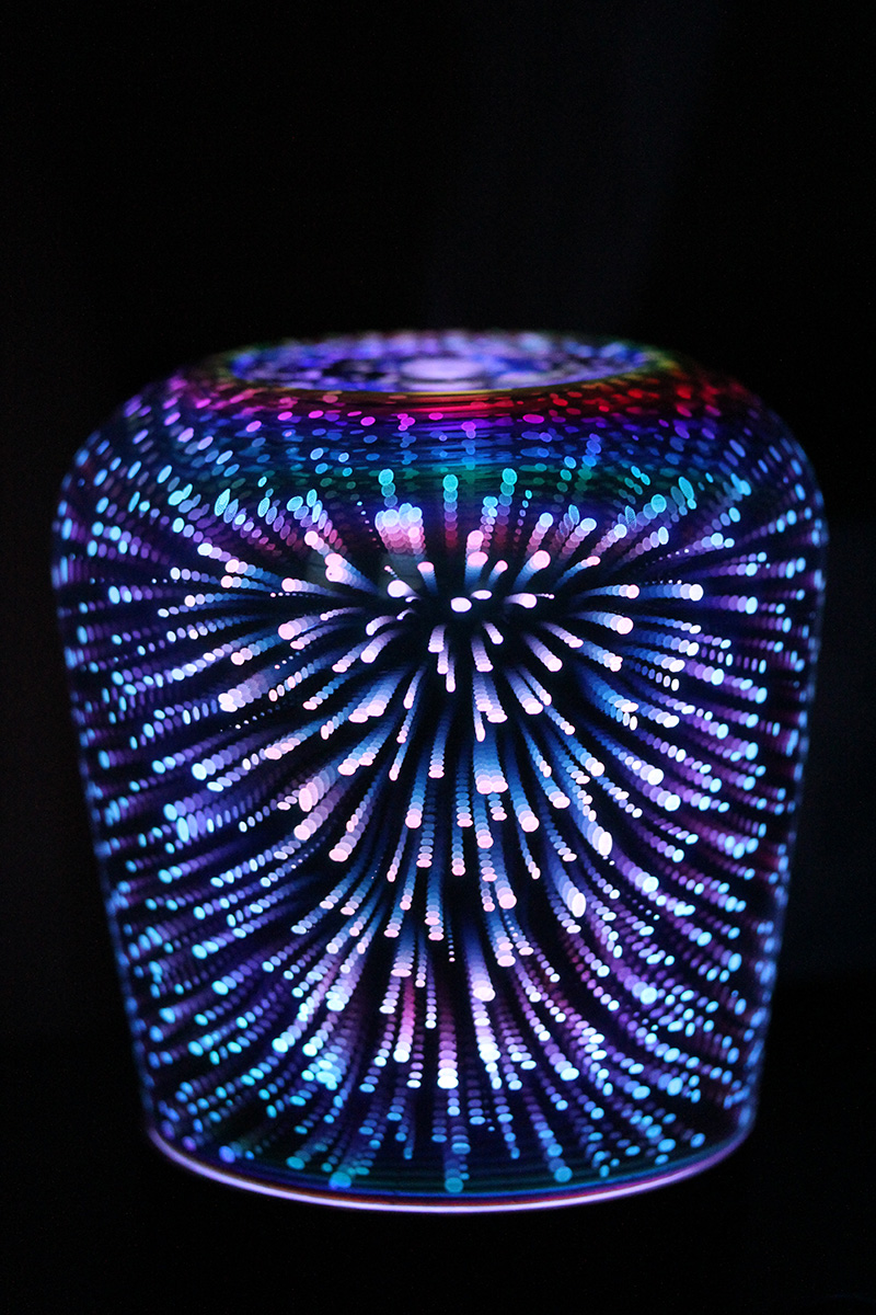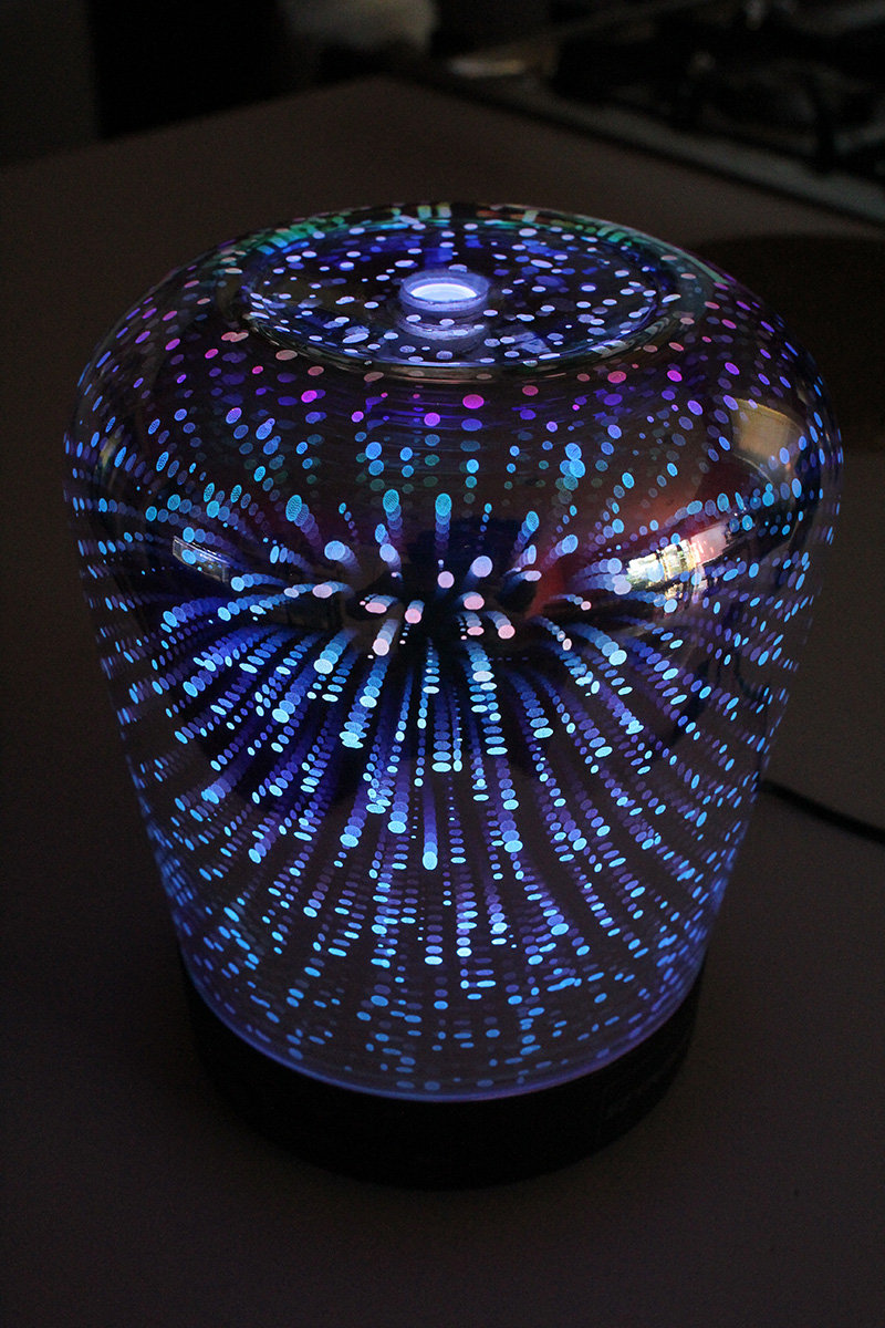 the sztrokia might be a disappointing diffuser, but it sure looks pretty. the glass shell looks like there might be multiple layers of mirrored display in order to create that infinity dots effect. i did some research online, and finally discovered this effect is called an infinity mirror. basically two layers of mirror, the one on the inside 100% reflective, the one on the outside only 50% (like a one-way mirror), which creates that cool infinity effect. that combined with the color-changing led's create this very psychedelic transcendental calming optical illusion.