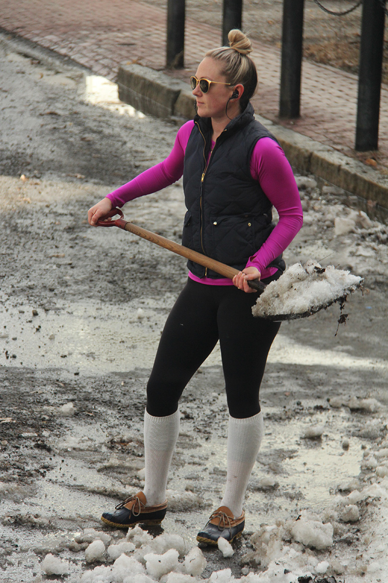 anyway, i bought out my shovel and started reducing the snow pile in front of my house. jess was being more polite about where she dumps her snow, neatly piled on the other (sunny) side of the street. i was less diplomatic, just tossing the snow (really more like slush at this point given our 3rd straight day of record high february heat) out onto the road for passing cars to roll over. even after i finished and bid jess good bye, she was still outside reducing the piles even further.