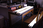 the silver shop light consumes the least amount of power at 39.6W. this may sound like a good thing, but it means it's not as bright as the other lights which use more power. of my two sets of matching luminaire shop lights, one is 56.1W while the other is just 45.7W. 56.1W is very close to the two T8's, which both consume about the same amount of power at 58.6W. that means i should retire the silver light. but i want to switch the fluorescent tubes to see if that will make any difference in the wattage (i personally think it won't, that the reason why some lights use less power is because of an aging ballast that needs to be replaced).