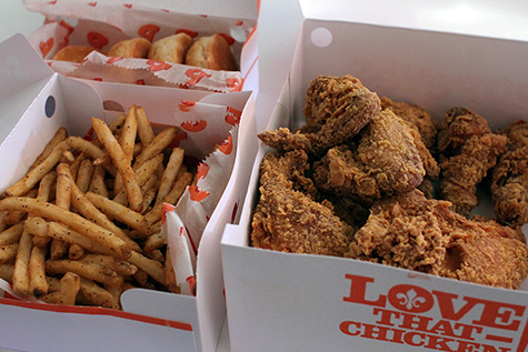 around 8:30pm i was hungry enough to eat a few more pieces of fried chicken, along with a salty biscuit, and a box of soggy cajun fries.