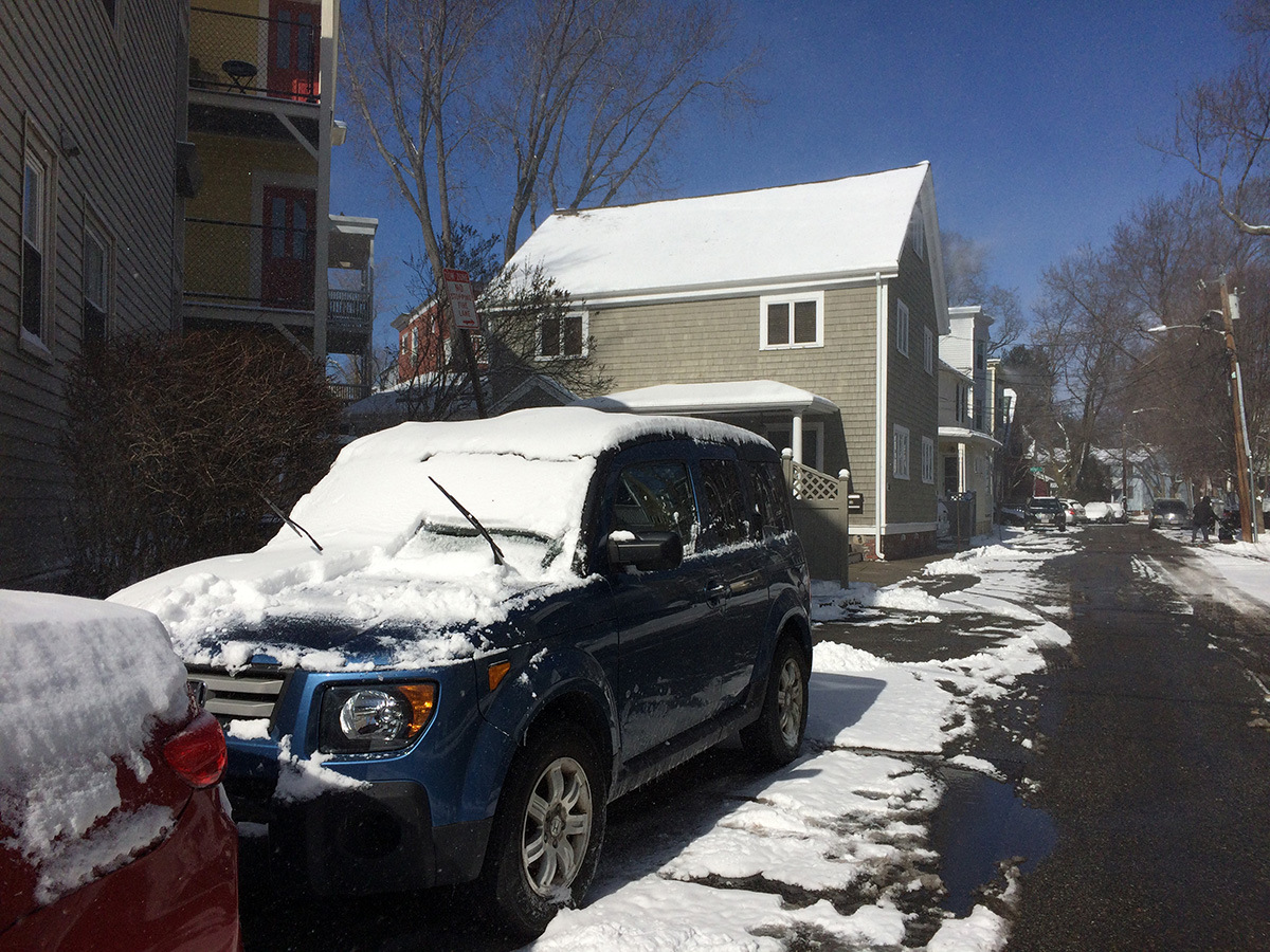 my sister texted me at 6am telling me i needed to shovel the area around the cafe. i ignored her until i woke up this morning and saw it must've continued snowing overnight because there was a fresh layer on the sidewalk, a couple of inches, enough to shovel. but when i called her, she said her friend jeff volunteered to clear the sidewalk using the snowblower. i went out to do some shoveling and cleaning the car.