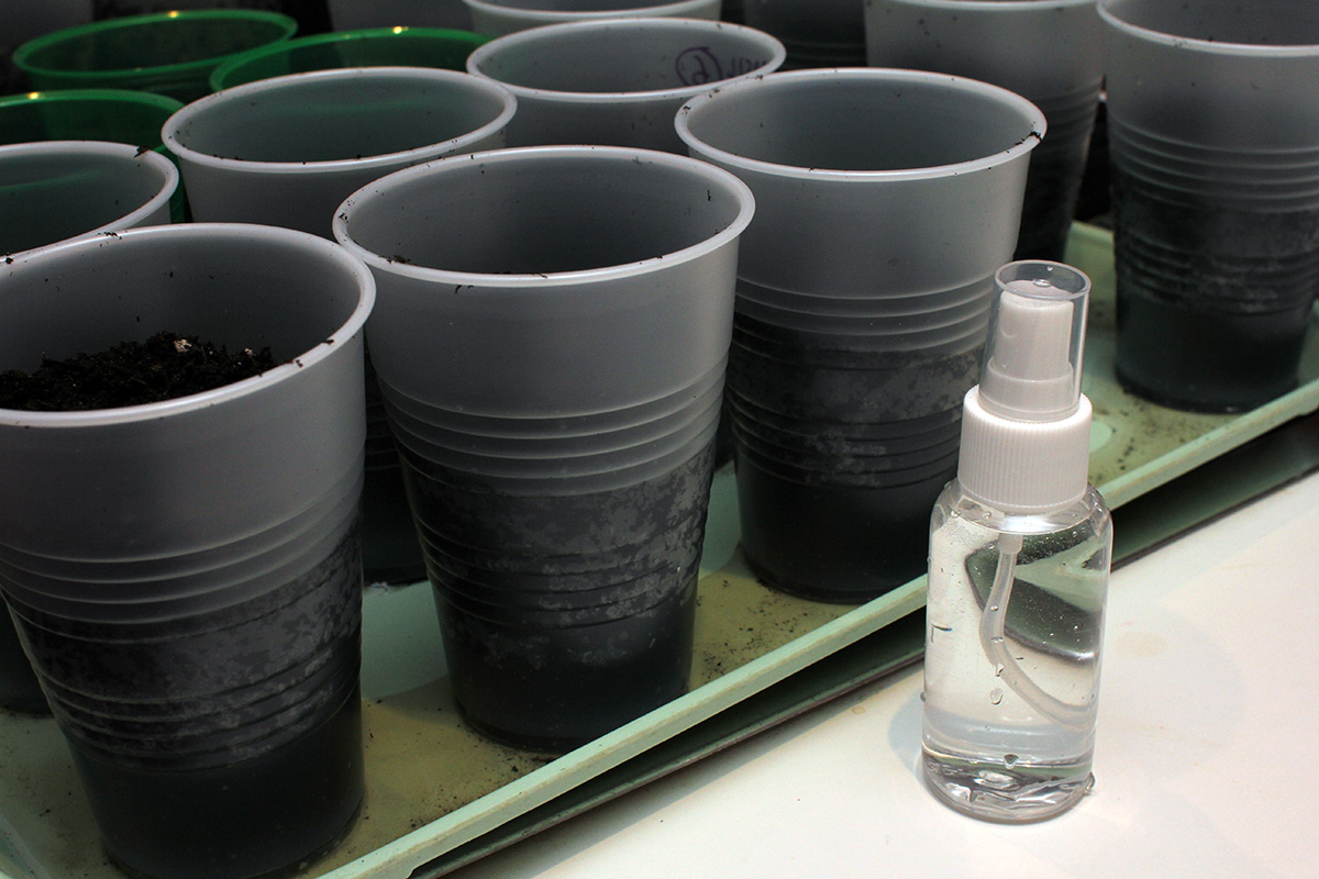i went to the dollar store a second time to buy a spray bottle. i used to have one but i couldn't find it (could be at my parents' place). since i wasn't soaking the soil to the very top, i was afraid the top layer would be too dry (although the soil seemed moist enough). to be sure, i got a little sprayer (came in a travel pack, i only needed the sprayer) to mist the top of the soil so the seeds make good contact.