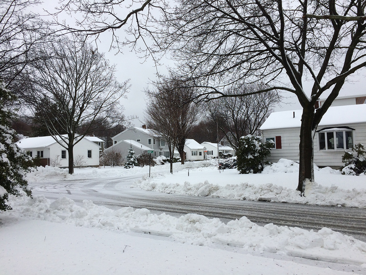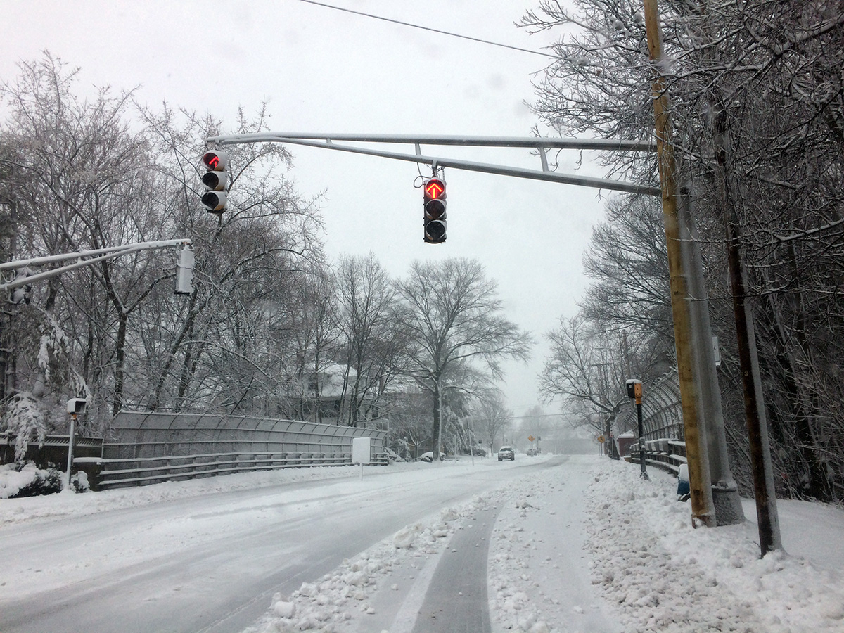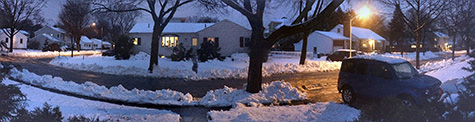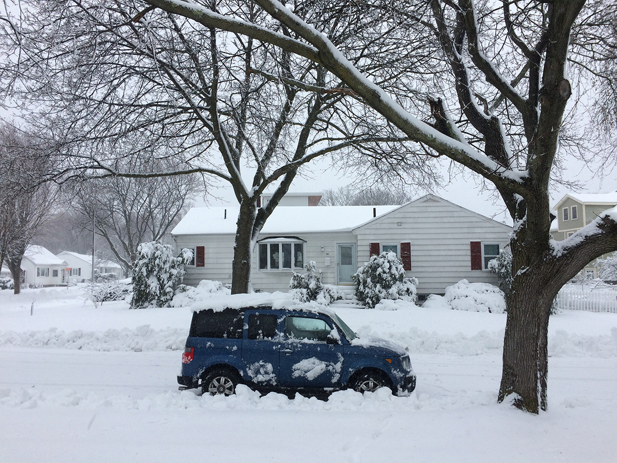 once i finished at the cafe, i left for belmont around 2pm to shovel the snow there. this was probably the scariest part of the day, as the snowfall was at it's heaviest and there was near white out condition. fortunately there was even less cars on the road, so i slowly inched my way to my parents' place traveling at 10-15mph.