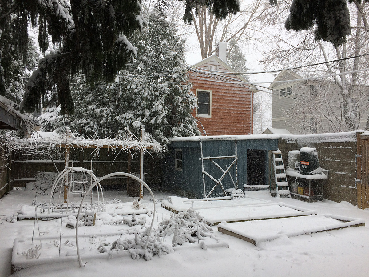 i wasn't going to go out again until probably close to 6pm, but my sister called around 4:30pm asking when i was coming back to the cafe. i decided to get a head start and began to get ready. my clothes were dry but my jacket was still wet, but there was no way around it. for this second round of shoveling, i didn't bother with the snowblower as it was now all slush since it was raining. i finished close to 5:30pm before driving to the cafe.