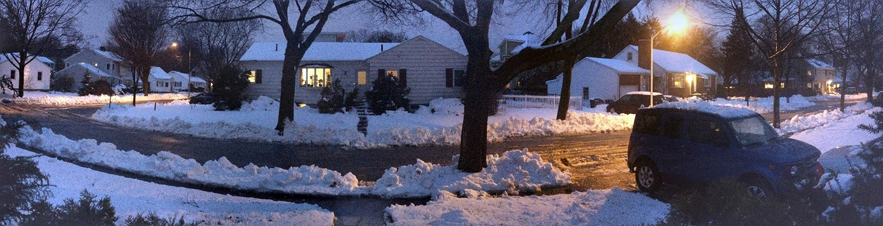 my original plan was to drive my sister to alewife to pick up her car, then she could meet me back at my parents' place, where i'd leave the car and then she'd give me a ride back home. but there was still a little bit of snow later in the evening, and it'd be better if the parking lot can be kept clear for the trucks, so the new plan was for me to drive back to my parents' and stay there overnight.