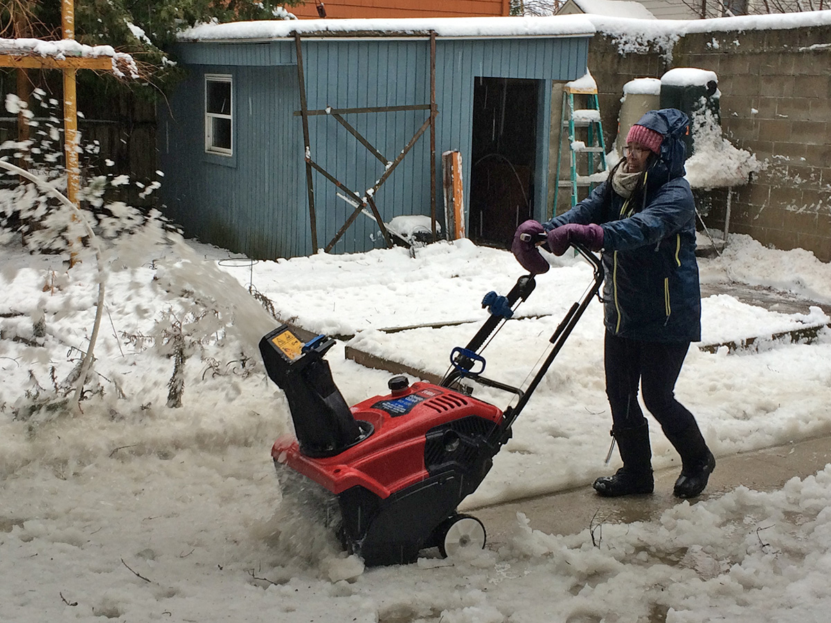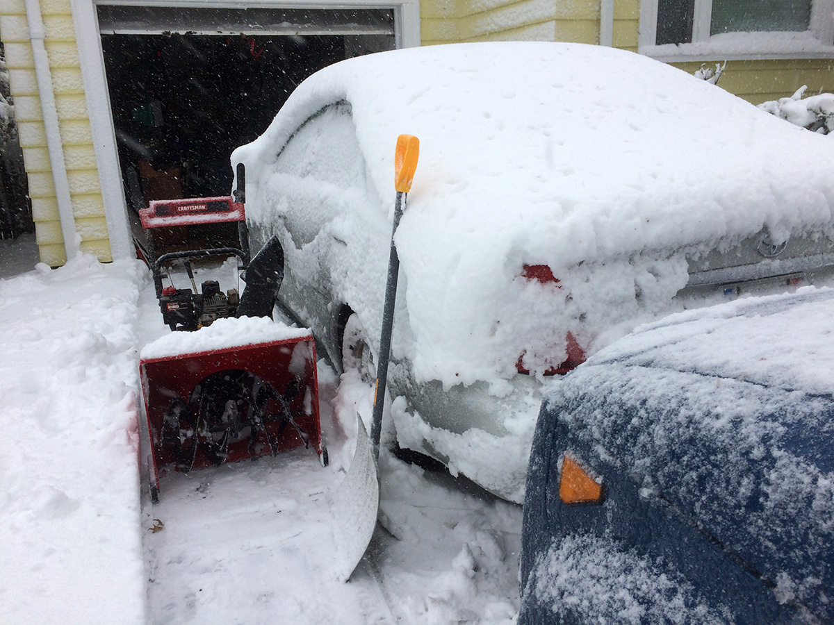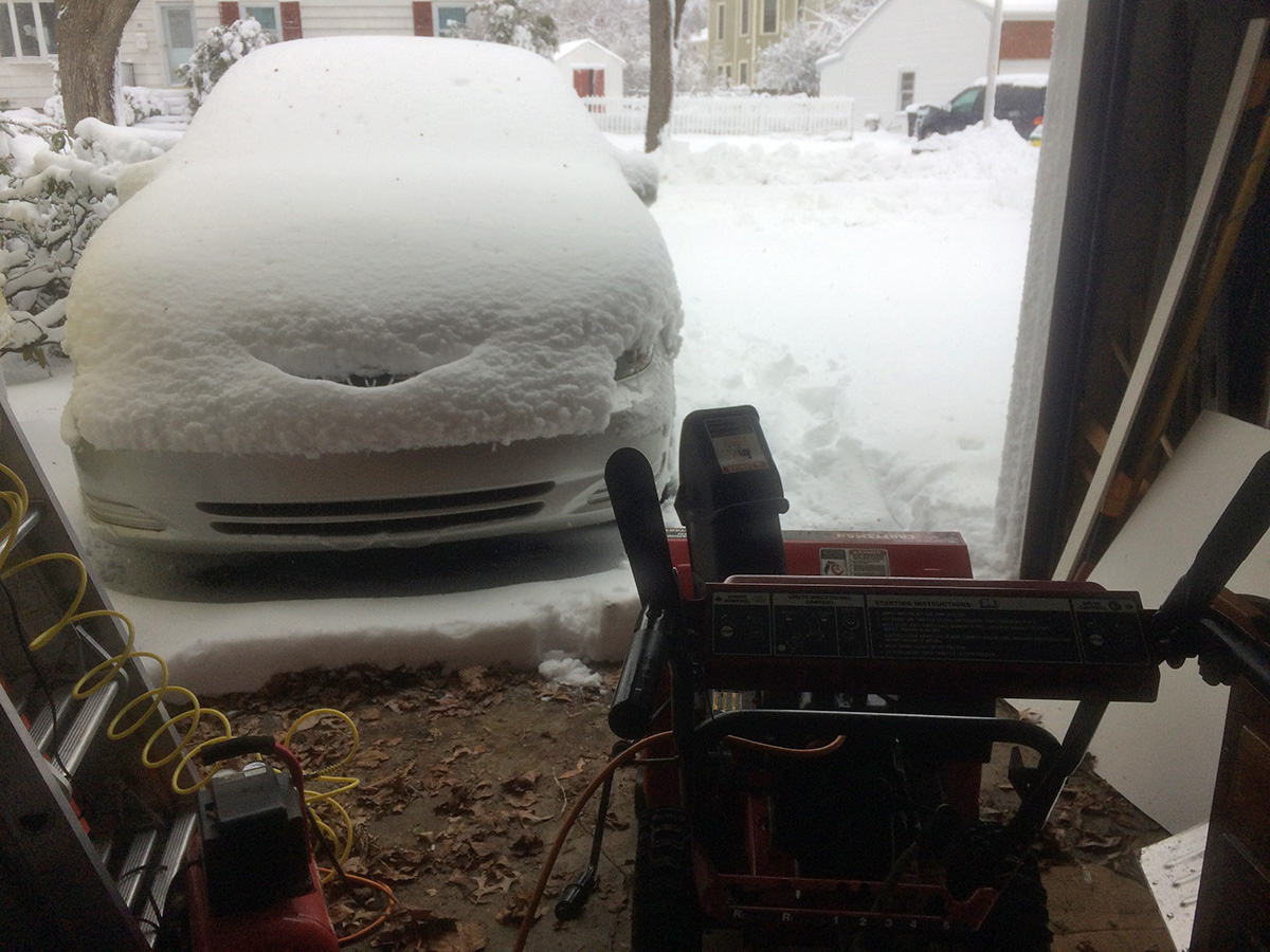 when i arrived, i had to park outside initially, until i could clear out the driveway, which was not only covered in snow, but a tall pile of snow blocked the entry way due to the snowplow trucks. i prefer to shovel by hand, but this was wet and heavy snow, and since there was a 2 stage snowblower in the garage, it'd be easier to use that instead. however starting up the snowblower was a challenge. it took me nearly a dozen tries before i finally got the machine to start up without petering out. it took me about an hour before i finally got enough snow cleared to move the car into the driveway.