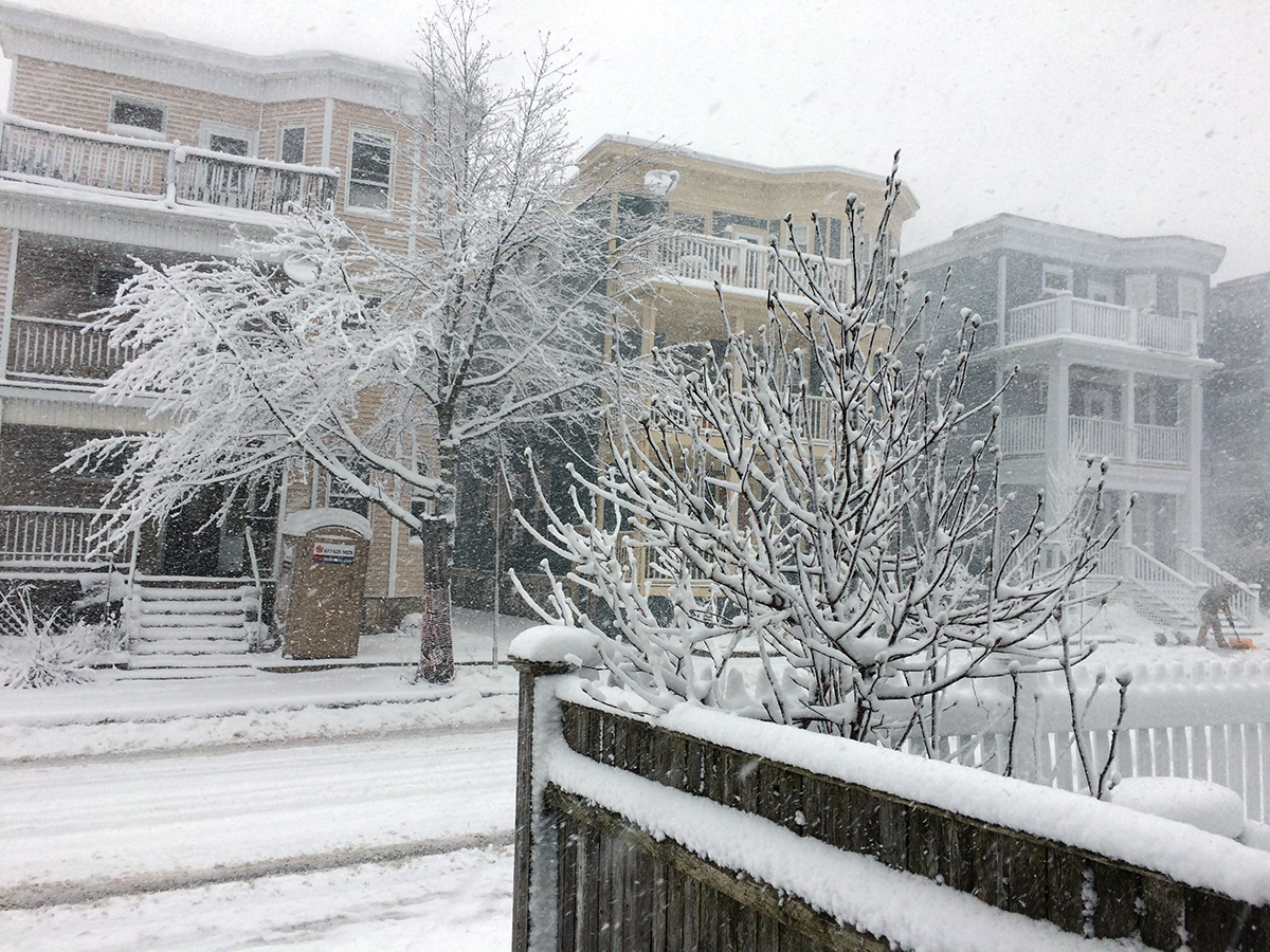 everyone was hunkered down at home this tuesday morning, to wait out the snowstorm that was engulfing the area for the next 24 hours. i however didn't have that luxury, as i was tasked with shoveling both the area around the cafe and my parents' place. as for my own place, i was hoping my upstairs neighbors would take over that duty. my original plan was to wait around noontime or the early afternoon, when the accumulation was thick enough to shovel. but i was afraid of getting stuck so i decided to leave for the cafe in the morning and wait there instead. if i did end up getting stuck, at least i was in place where i could be most useful. i left the house by 10:30am.