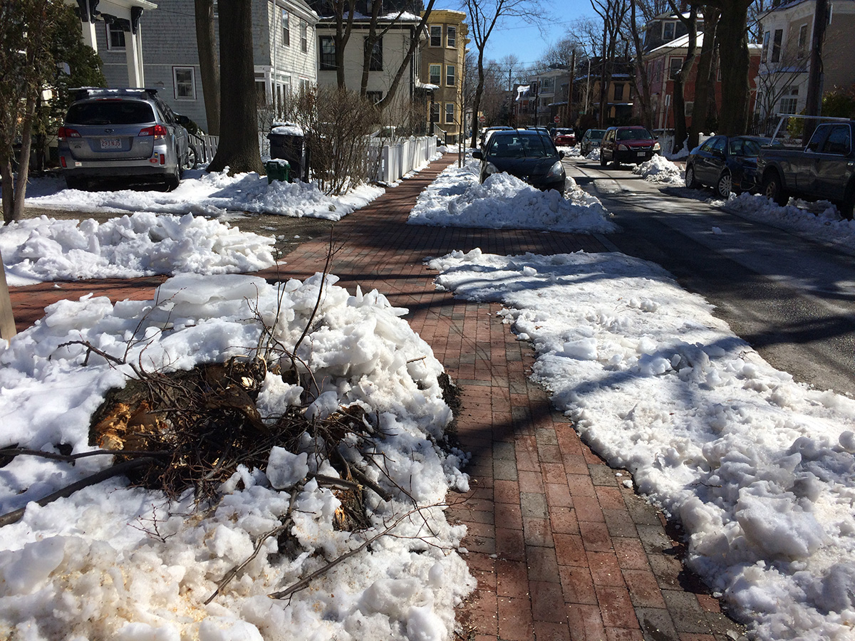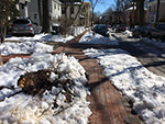 cambridge road crew came out and quickly disposed of the tree that fell during the snowstorm. blinding white out condition and chainsaw doesn't seem like a safe combination but when i revisited prentiss street today, there was no sign of the tree besides a hollowed diseased tree stump and some wood dust.