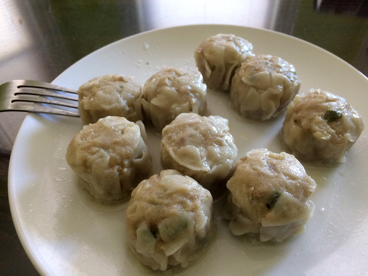 back in cambridge i heated up a box of trader joe's shumai in the microwave for lunch. it was a little greasy (as typical of cantonese cuisine) and i finished them off with some vietnamese hot sauce.