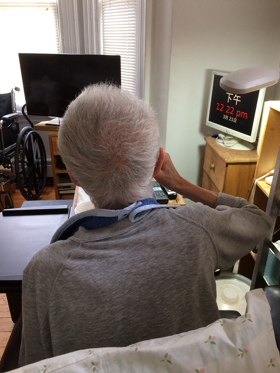 today was the last day of lunch delivery to my grand uncle, as my parents were returning home tonight. afterwards i was prepared to spend the day in belmont, then drive to the airport in the evening to pick up my parents. when i left my house, besides packing the usual equipment, i also brought with me some snacks. earlier my sister had dropped off hailey at my parents' house, and i turned up the heat remotely, from 50° to 60°. while at the cafe, i installed a spare wall clock in had in my basement (formerly my kitchen clock), to replace the one my aunt damaged.