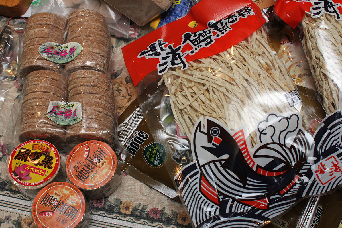 my parents brought back from taiwan suitcases stuffed with food. you'd be surprised, add up enough packages and they can start getting a bit heavy. one interesting thing i noticed about taiwanese food packaging is that there are no english, all chinese. i don't know if that was the case in china as well. these were taiwanese food for taiwanese people, not for any international markets.