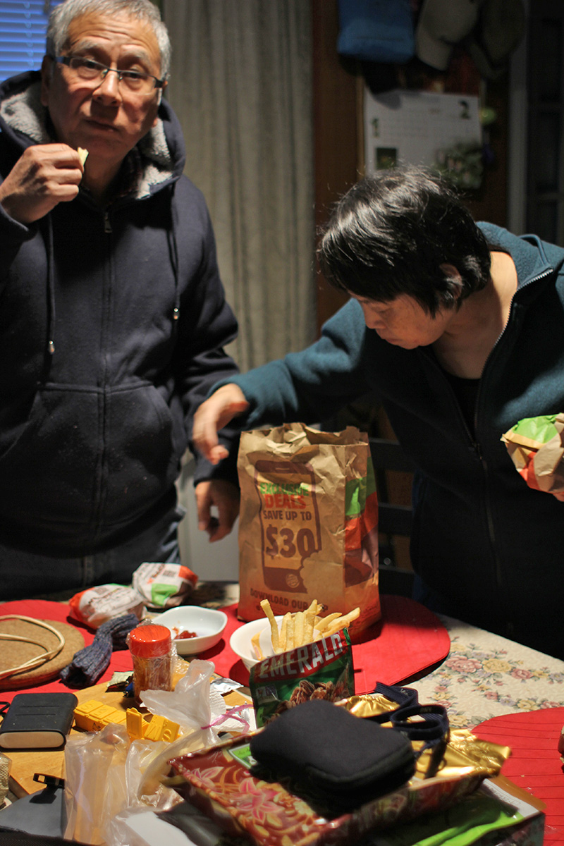 my parents didn't get home until 6pm. nobody wanted to cook, so we decided to run down to the nearby burger king and get some whoppers and fries with coupons. the entire meal cost just $10. afterwards my father said he could give me a ride home because the temperature had dropped into the 20's, but i insisted on riding back. it was cold and i might've gotten wind burned on my cheeks, but it wasn't too bad.