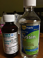 both my parents took an afternoon nap. my father was knocked out by the prescription guaiatussin ac syrup (combination of guaifenesin and codeine) for his persistent cough since returning from taiwan, my mother slept in the living room. in the late evening my father woke up to make dinner.
