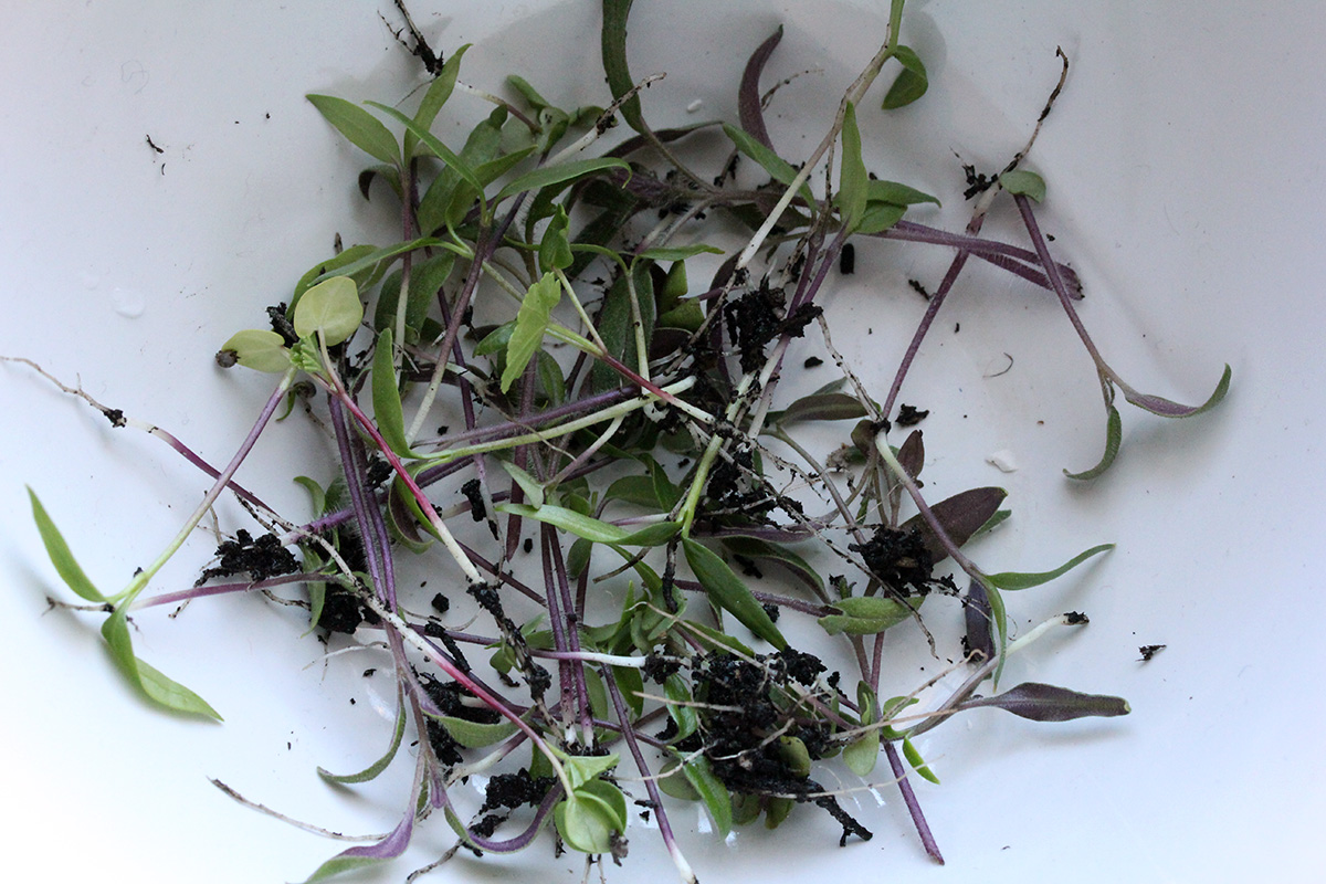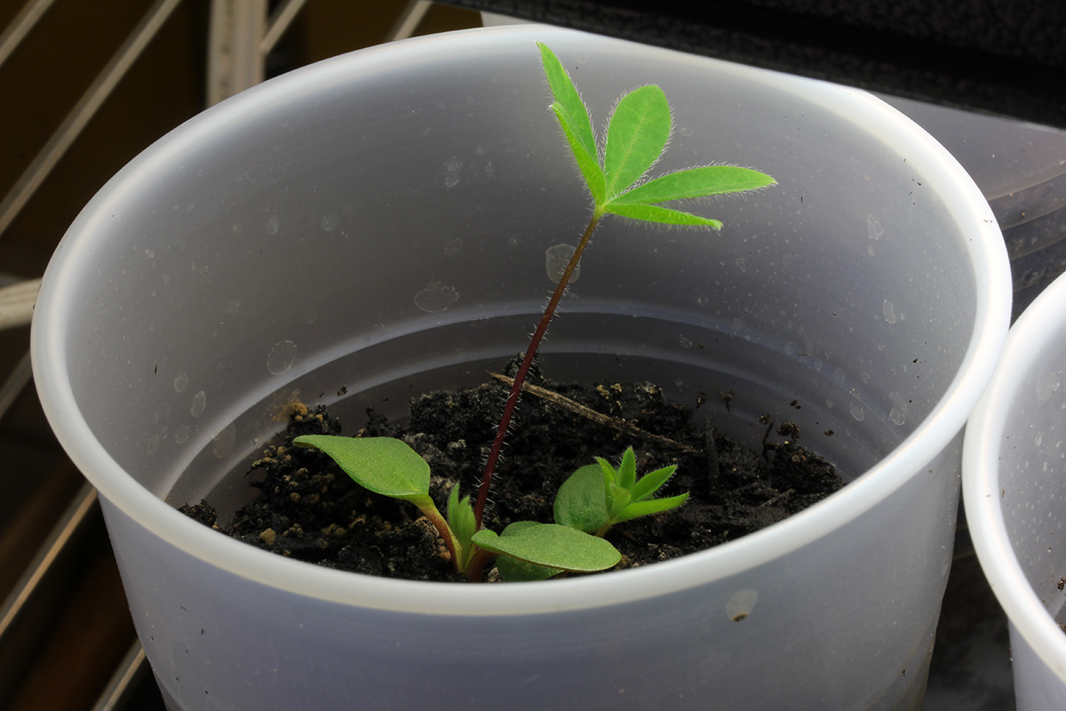after lunch i performed the vital but unpleasant task of thinning out of my seedlings, which will help the remaining seedlings to grow better. one reason i don't thin sooner is so i have a surplus seedlings to replace the ones that never germinated in empty cups. but now all the cups are occupied, and the seedlings all seem to look healthy enough to surprise, so it was time to thin them out. while i was at it i also replanted 2 surplus mallow seedlings in 2 empty cups that were originally supposed to be for lupines that never germinated. one of the mallow seedlings seem to do okay, the other started to sag after a few hours.