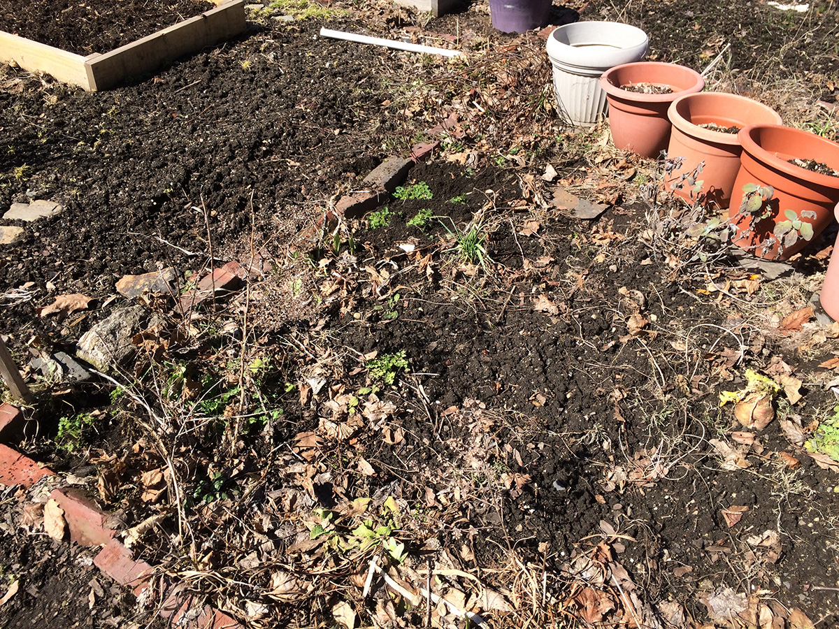 i wanted to go to the supermarket before the snowstorm tomorrow, but i only had time to run one errand, so i decided to go to the community garden instead and move some overwintering larkspurs from my old plot (34) to the new plot (22). it was pleasant sunny day with temperature in the 50's but felt warmer than that. it's just hard to imagine that by tomorrow it will be snowing. i managed to relocate 6 patches of larkspurs, and collected two larger patches for myself to grow elsewhere. still not a lot of activity in the garden, besides the crocuses. it won't matter though because by tomorrow it'll all be buried under the snow.