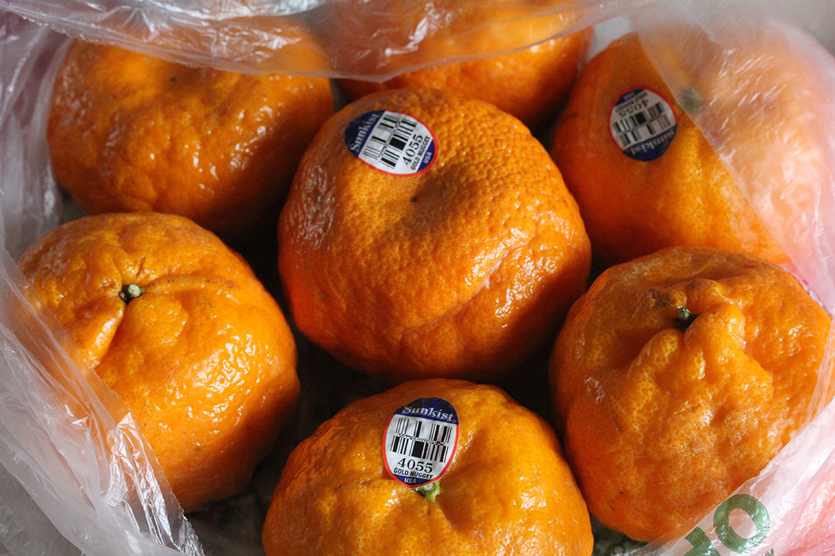 i tried one of the oranges when i arrived in belmont. it tastes similar to a typical clementine, except slightly larger, with a very think but easy to peel wrinkly rind. it sort of likes like an ugly fruit and that's what my mother thought at first. it was sweet, but not that sweet, with also a citrusy tartness.