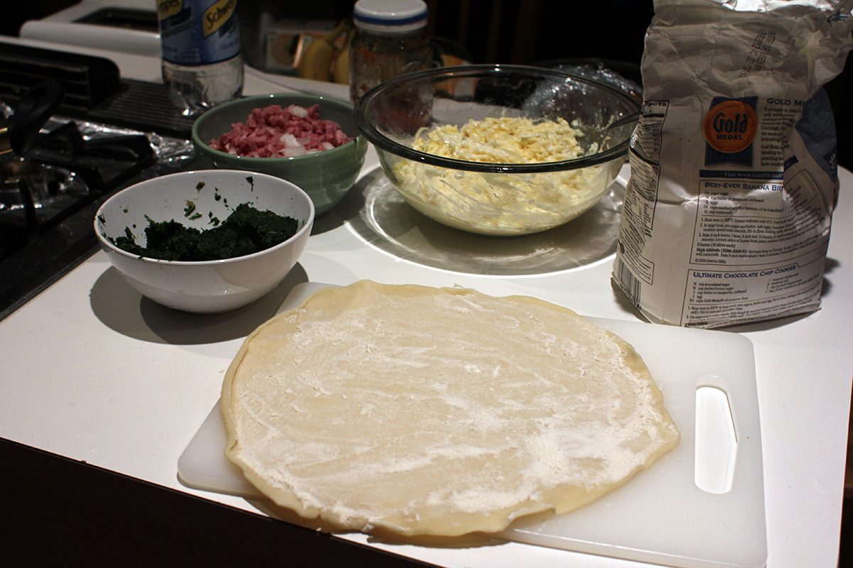 i began making my spinach ricotta quiche around 7pm. i had this recipe in mind since last week, but i had some frozen food i ended up eating instead. all the ingredients were already in the fridge, i just needed to make it.