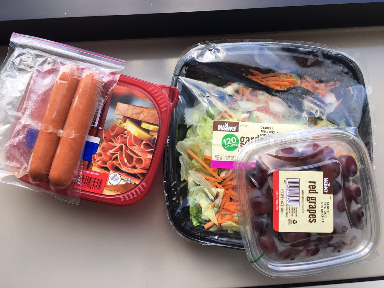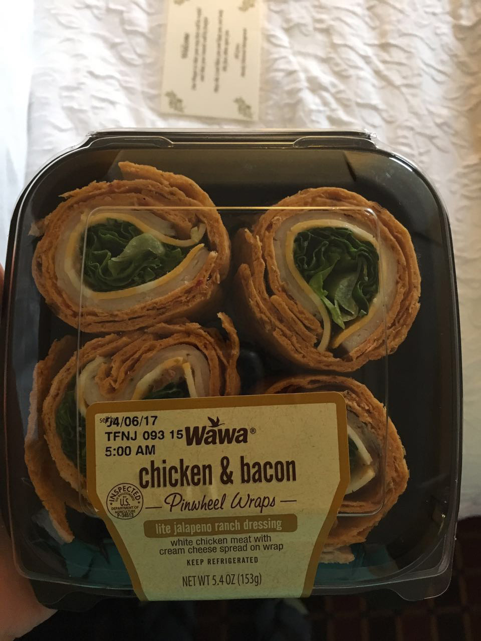 i asked wangyang if she visited wawa this morning. she said yes, and sent me a bunch of photos. she said it was very dangerous because there were no sidewalks so she had to walk along the breakdown lane of the small highway to get to the store (about an 8 minute walk). she said she wouldn't walk there again. she bought some pre-packages wraps and salad (wawa is more famous for their made-to-go sandwiches, but knowing very little of american cuisine, i understand why she went with the pre-packaged).