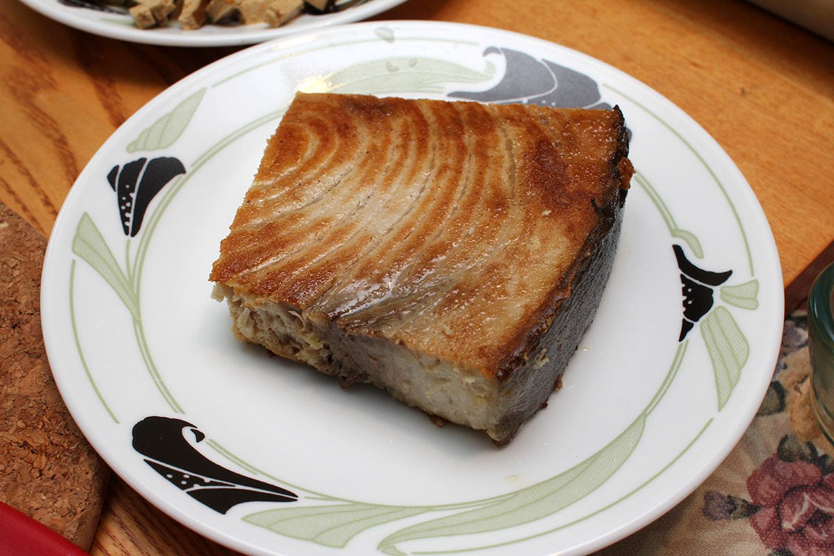 karen didn't have dinner yet so i heated up a slice of my quiche in the toaster oven. she said it was pretty good, and thought the ham was a good addition. she didn't think it tasted too salty.