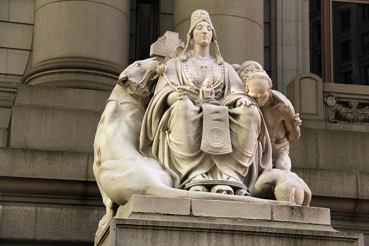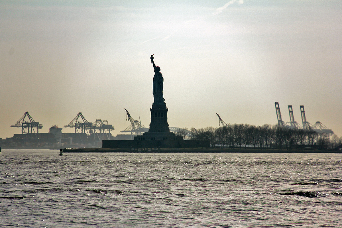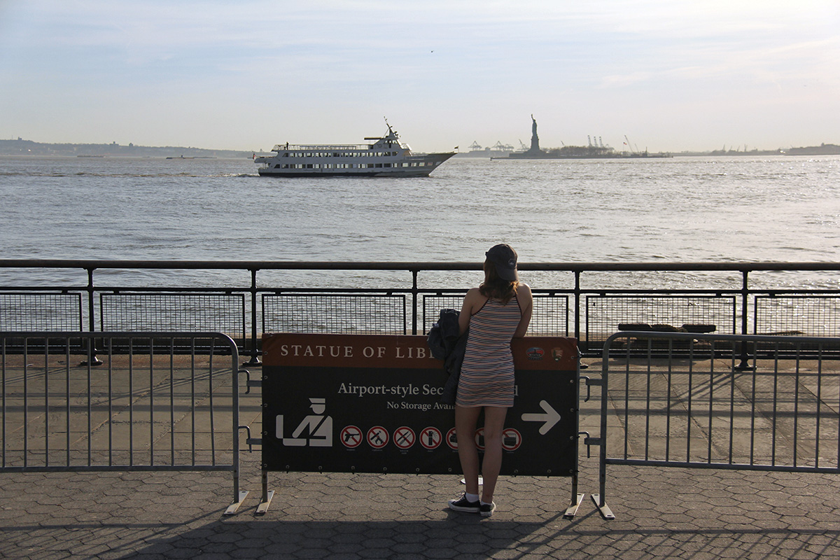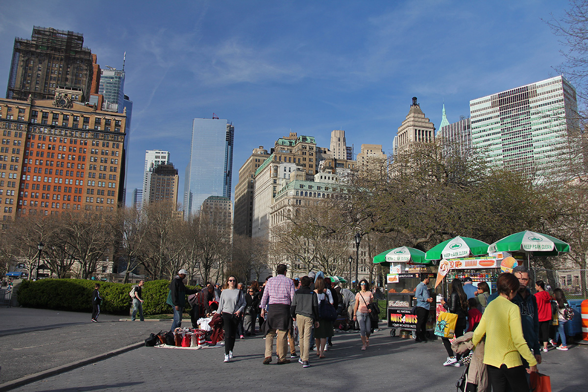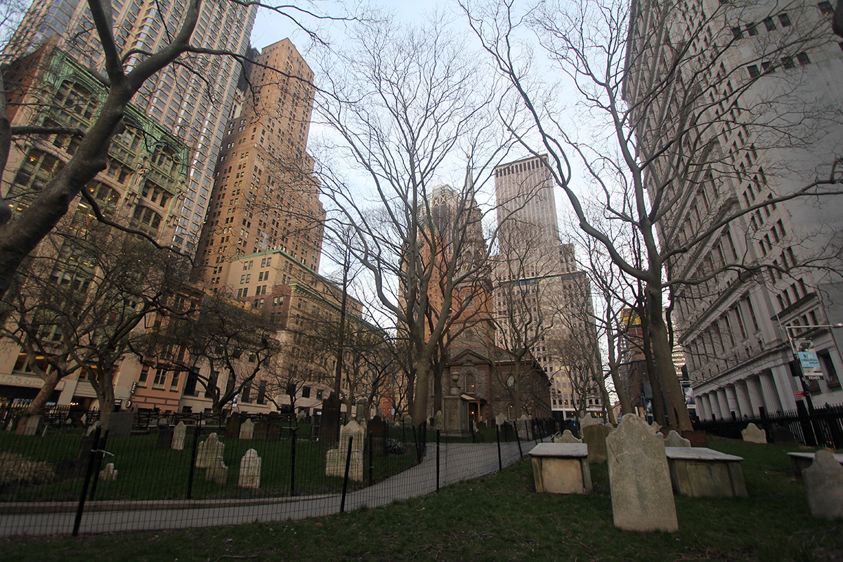 it took us an hour and 10 minutes to get from flushing to bowling green station at the southern tip of manhattan, arriving at 5:20pm. good thing sunset wouldn't be until 7:30pm, giving us 2 hours of daylight to sightsee downtown manhattan. we went to battery park to view the statue of liberty in the harbor. wangyang remarked how small it seems. we left the park and headed towards wall street, passing by the charging bull statue swarming with tourists clamoring to get their photo taken with the famous landmark. i saw the new fearless girl statue. we made our way to the new york stock exchange, and as we came up to wall street, wangyang caught sight of trinity church and excitingly ran to go see it.