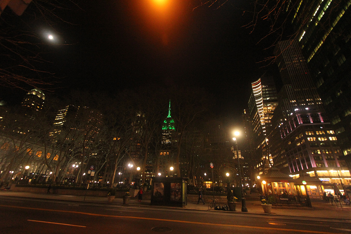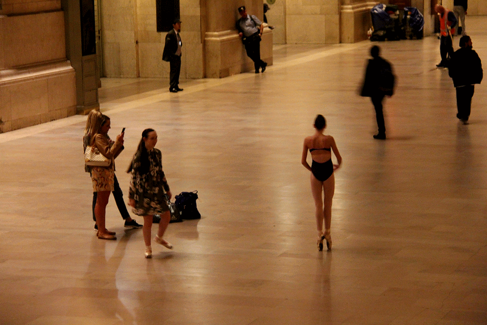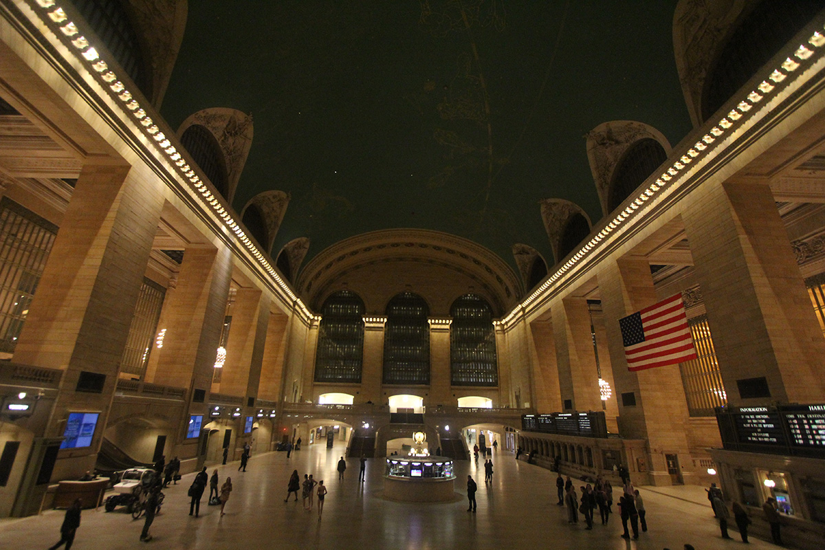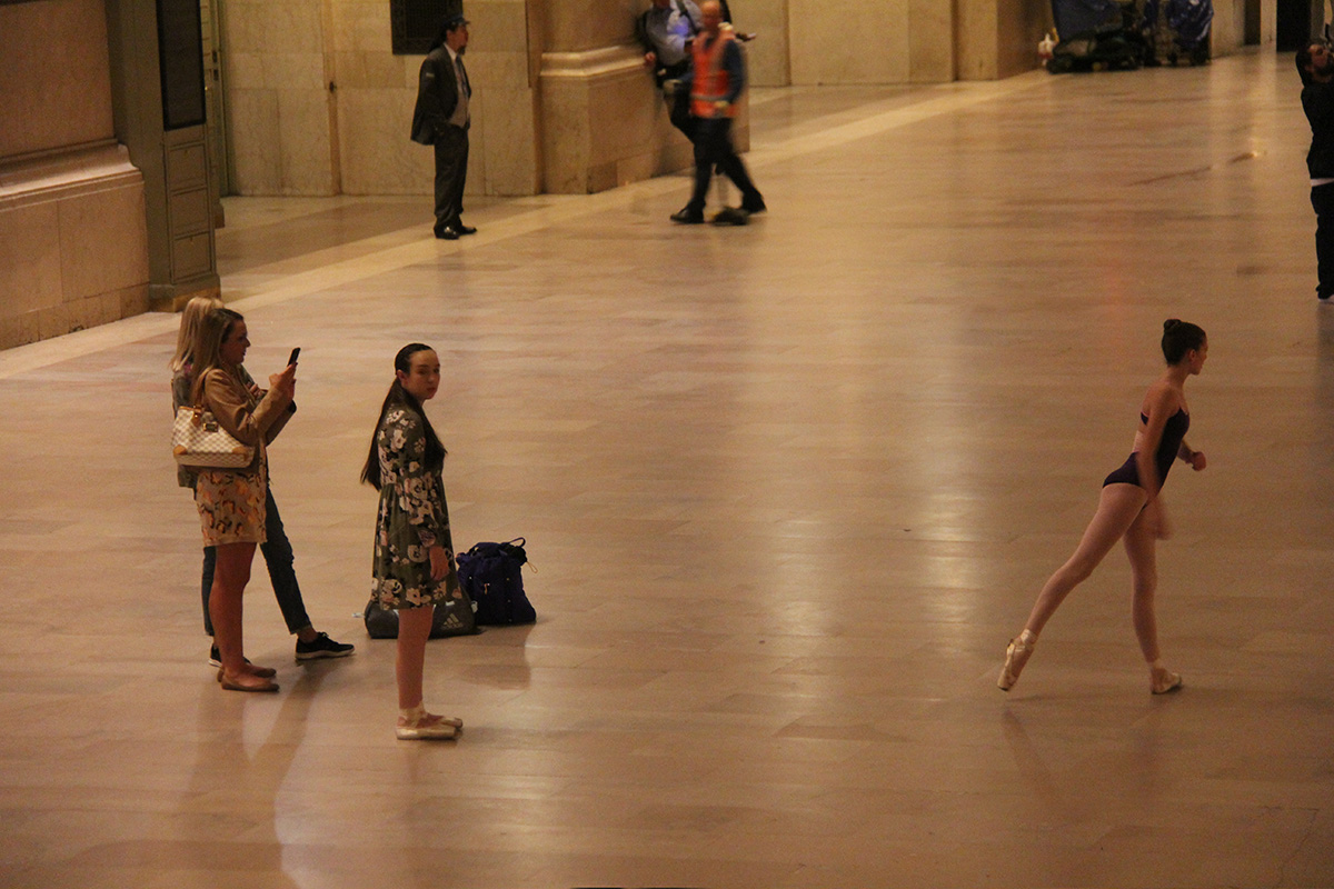 from time square we headed in the direction of grand central, which would be our final destination before catching a 7 train back to flushing. passing by bryant park, we could see the empire state building all lit up in green. by that point wangyang seemed pretty tired, but get a renewed dose of energy when she saw the inside of grand central station. up from the balcony stairs we saw a group of ballerinas performing in the near empty station. the station security were pretty unfazed by it.