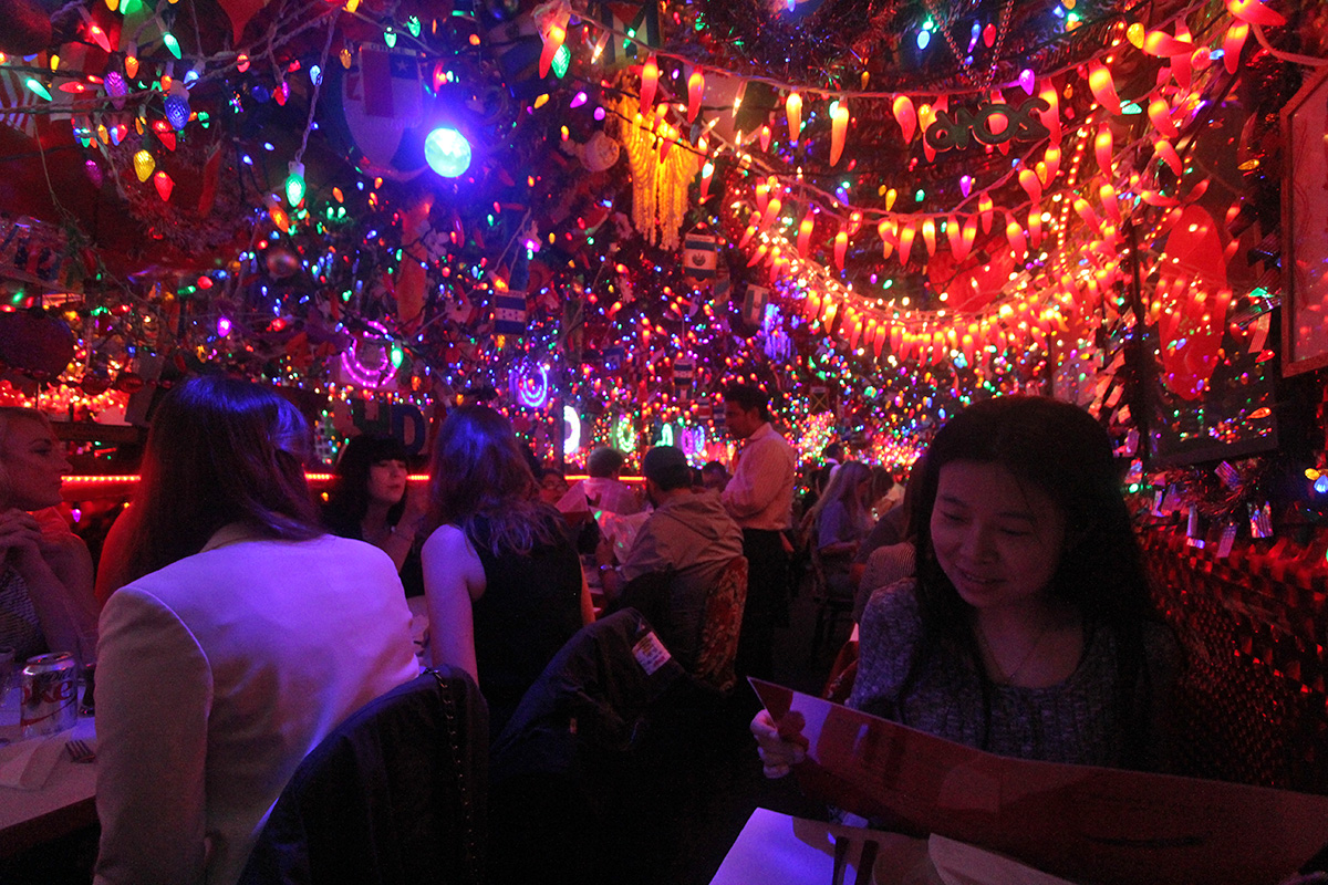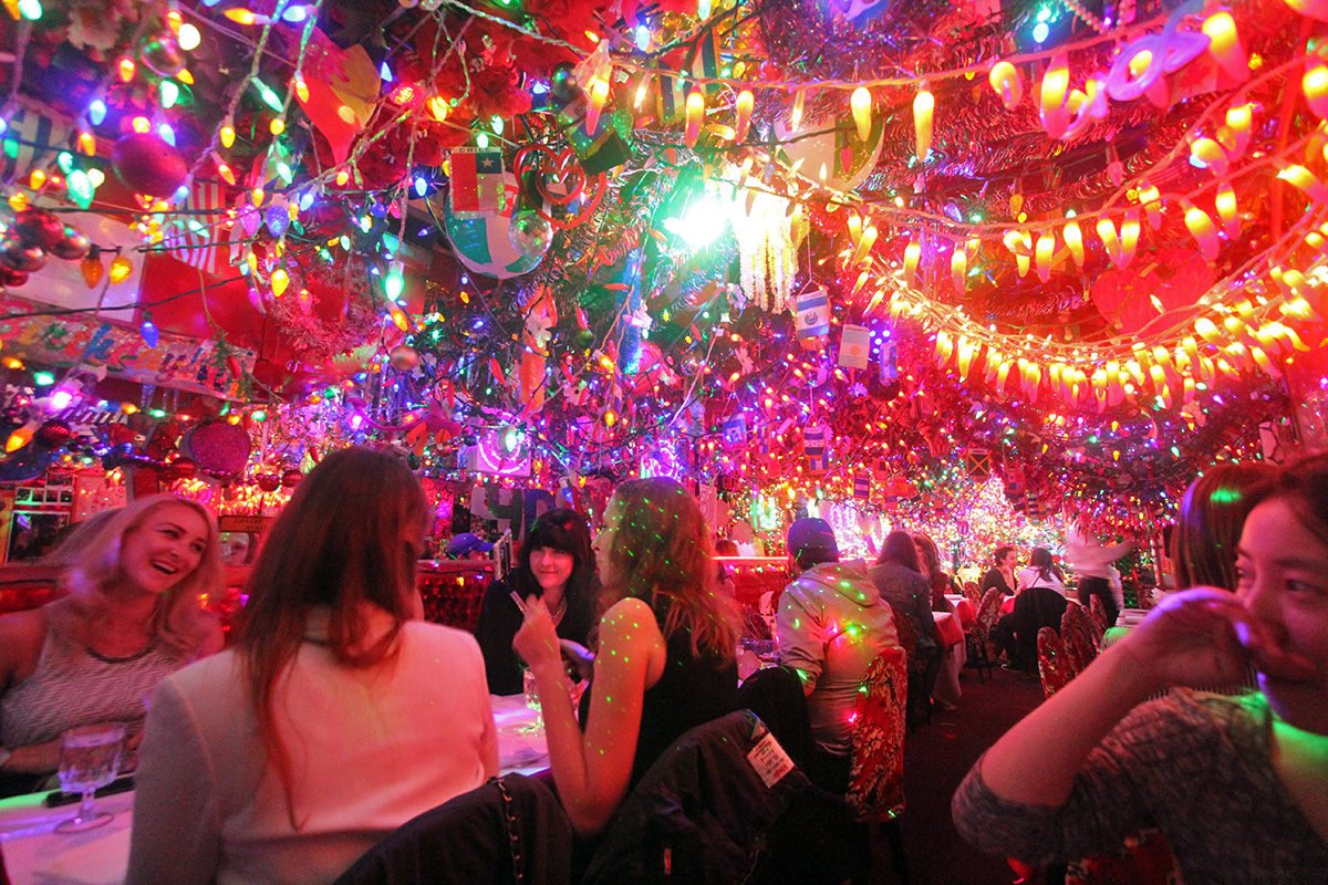 we caught a subway from the brooklyn bridge city hall station to astor place station in the east village. the restaurant i wanted to go was panna II garden, which came up as a first result when i did a google image search for "cheap indian restaurant new york city." i was impressed by the decorative christmas lights festooning the ceiling and walls.