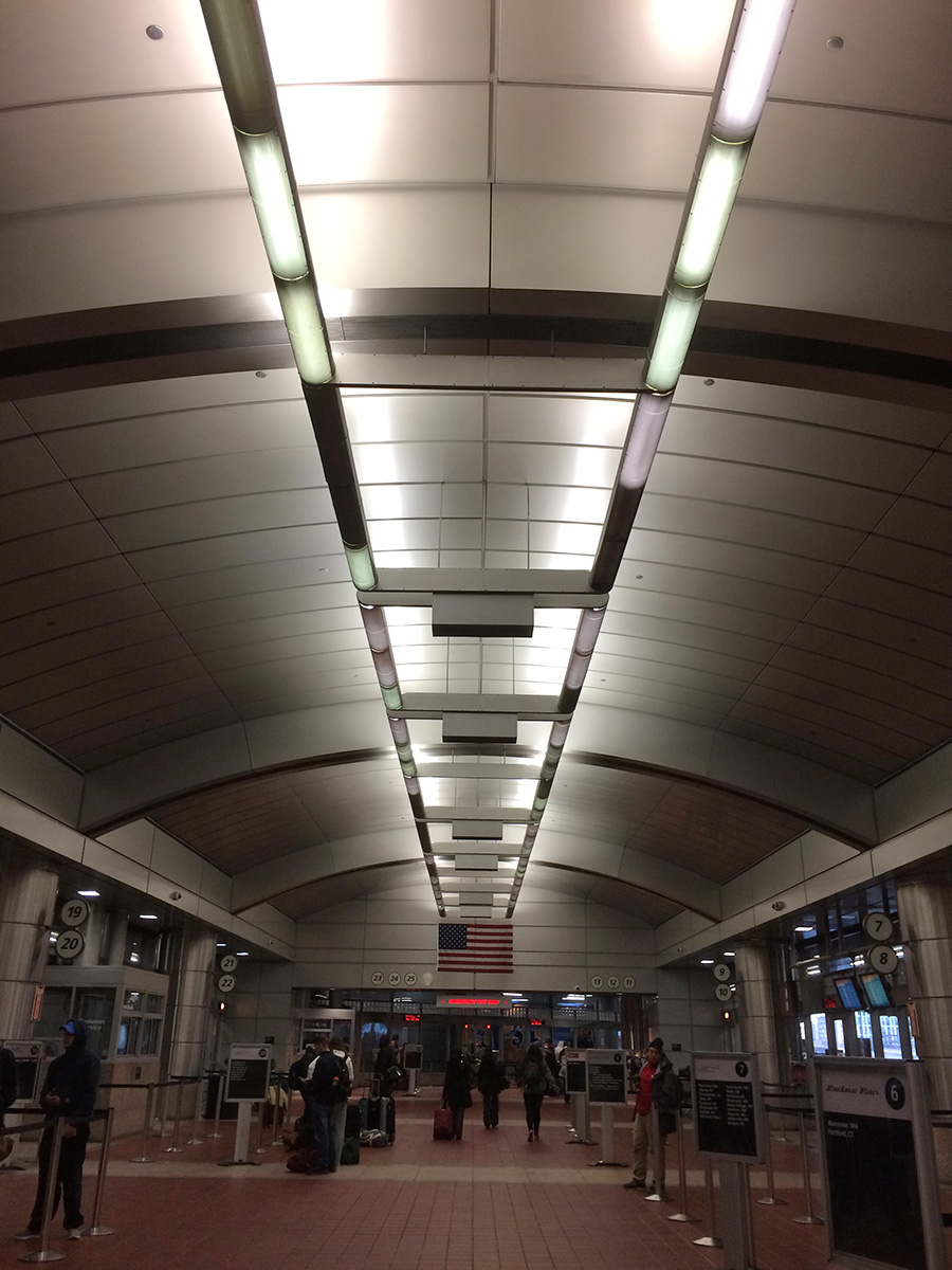 at porter square, there was an advertisement for a new target store opening in central square. it's long overdue, as i still remember when central square had a woolworth. when i arrived in south station i bought a bottle of water from CVS (99¢), as i didn't bring my contigo travel mug. i arrived at the bus terminal with 25 minutes to spare. there wasn't a lot of people in line, so i was hopeful i would have 2 seats to myself. my wish came true, as 2 seats were to be had when i climbed onboard and the bus began to leave.