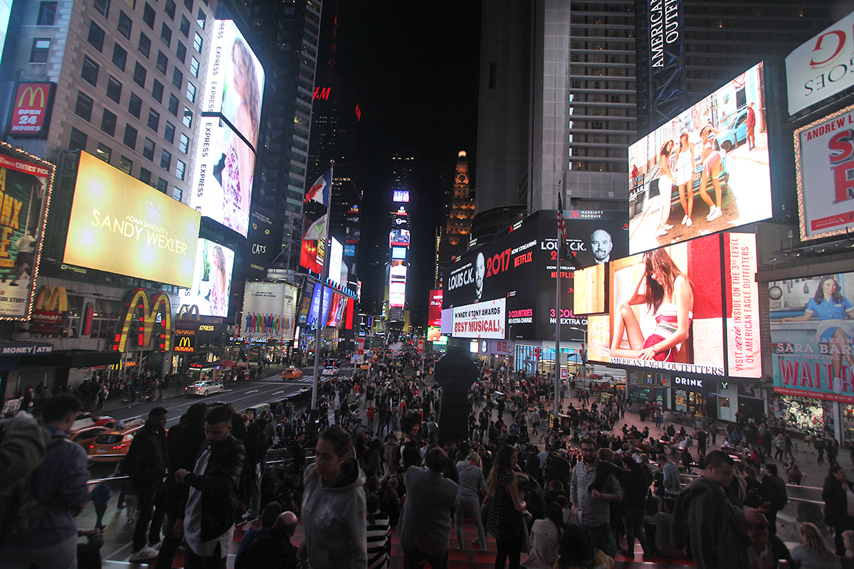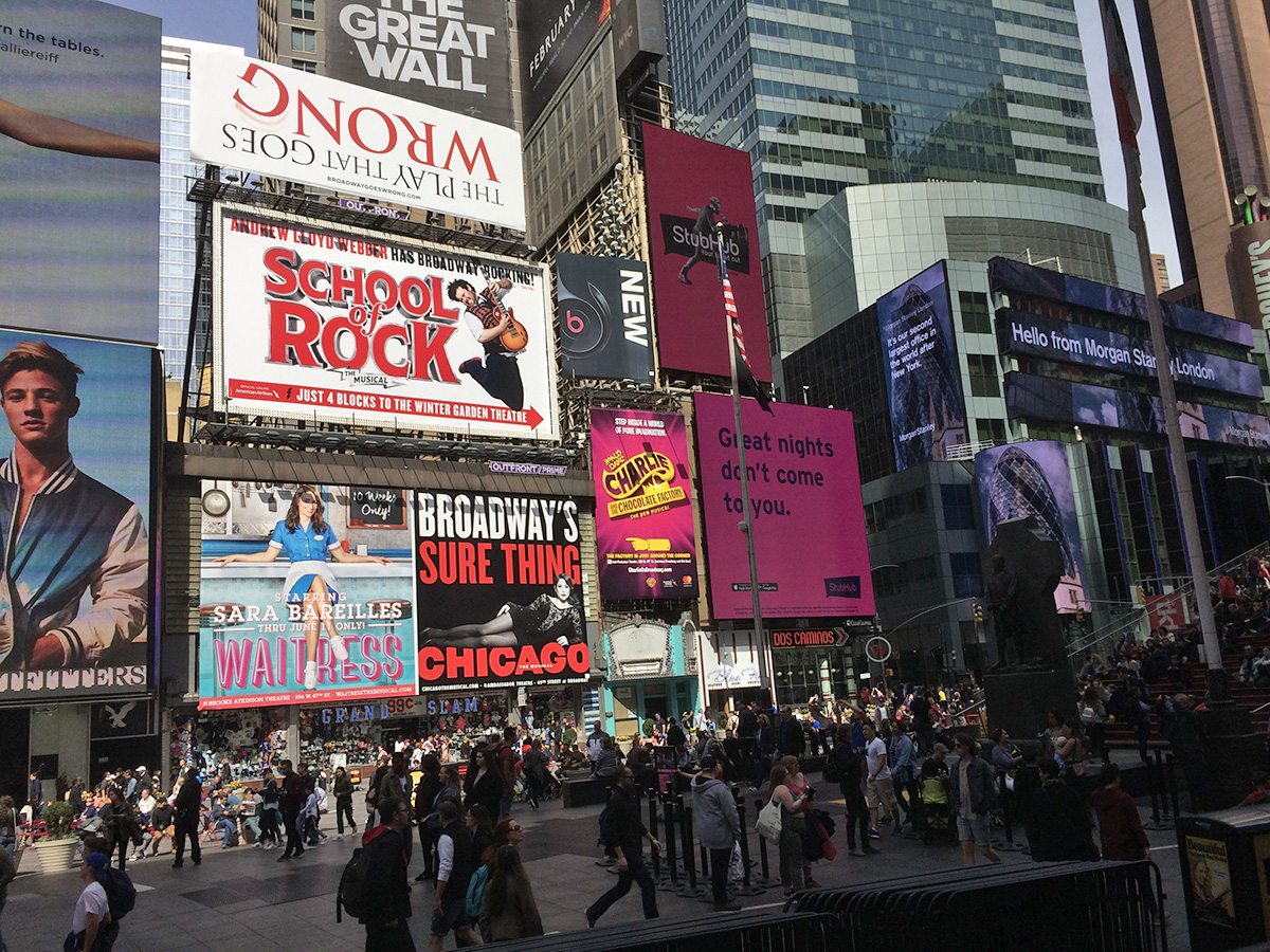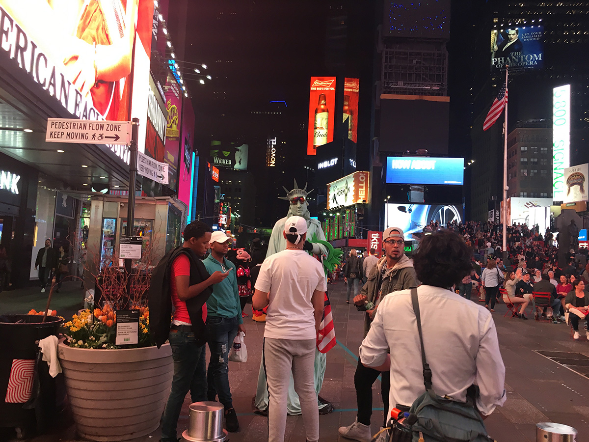 before we left east village, wangyang went to a cvs to get some maxi pads. from astor place we rode the subway to midtown, to time square. i showed her the new year ball, and pointed out the pro-china propaganda intermixed with all the commercial advertisement displays. i'm not 100% sure, but i think i saw grant imahara filming a segment in time square with a dSLR cameraman.