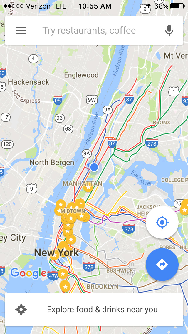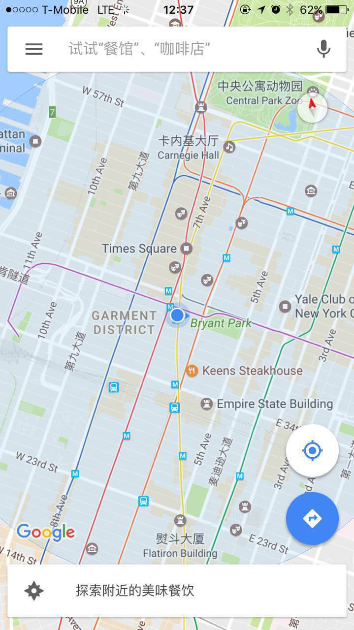 with about an hour before we arrived simultaneously in new york, wangyang sent me a screen capture of her gps location. she had yet to arrive in philadelphia, while i was already in manhattan (harlem). by 11:20am i was in time square, while at 11:37am she was just approaching jersey city. 11:46am i was waiting outside of penn station. it wasn't bad, i was sitting out in the sun, and if anything, i was worried i might get a sunburn, or look too suspicious sitting outside for so long. 12:20pm sent me one last capture, with her at 42nd street. i went to the eastern shuttle stop to meet her as soon as she got off the bus. she finally arrived at 12:40pm, setting foot for the very first time in new york city.