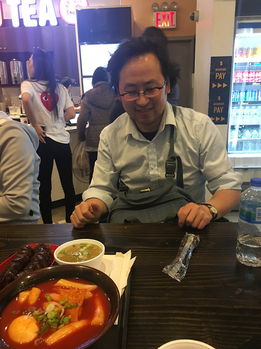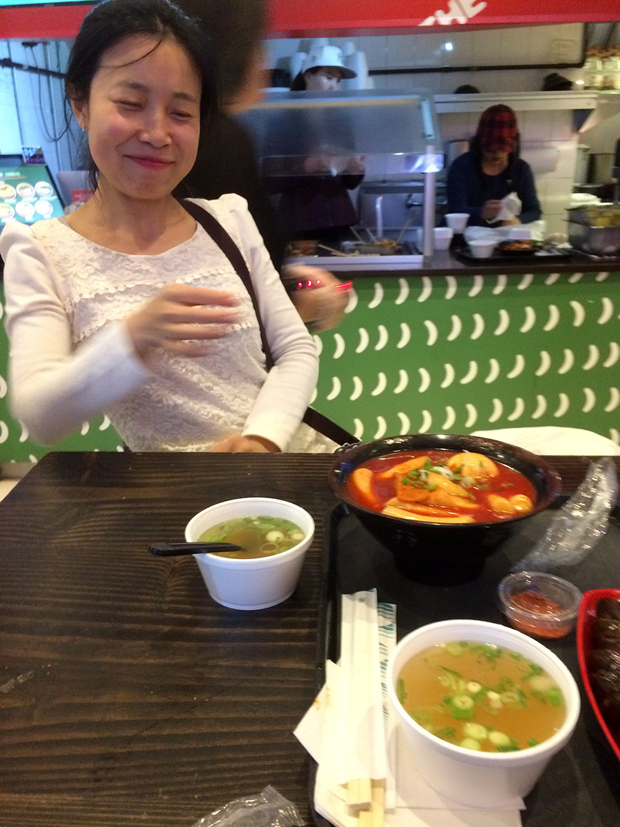 i hadn't seen wangyang for almost 3 years. i was afraid she wouldn't recognize me with my crazy hairdo. she looked exactly the same as i remembered her, with longer hair, and maybe skinnier than before. i gave her the choice between eating first or heading to the flushing hotel (which would take about an hour). she selected the food option. we walked down to koreatown to grab some quick korean food for lunch.