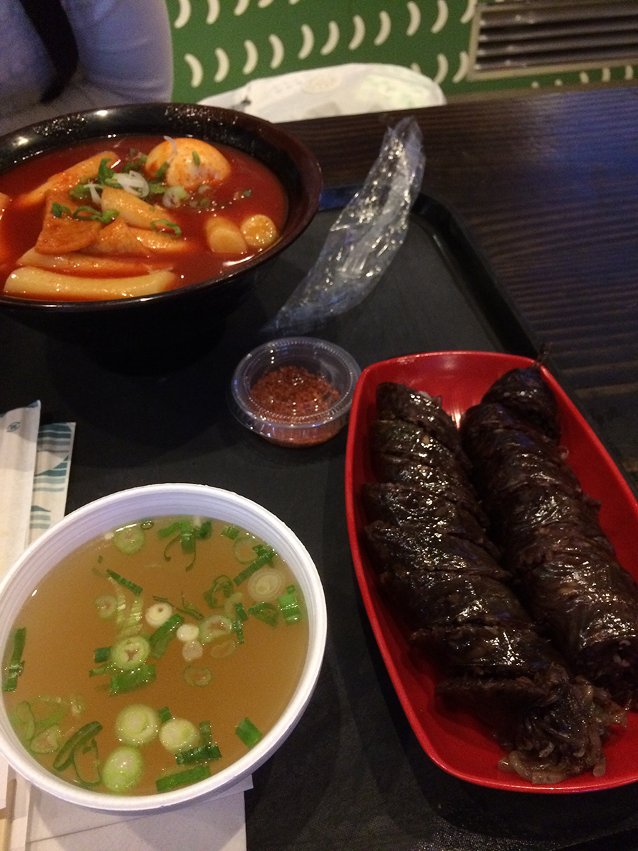 i took wangyang to food gallery 32, one of my favorite spots in koreatown (actually, it's the only place there i go to, as all others seem to be too expensive). it was crowded, but we managed to find opposite seats at the end of a table right where we ordered our food. i got the tteokbokki and sundae which also came with two cups of miso soup. wangyang herself had been to south korea twice, once for business, once for personal. she's had the spicy rice cakes before, but never tried the korean blood sausage (although she did have blood sausage while she was working in venezuela). after we finished eating we grabbed the subway from 34 street - herald square to switch to the 7 train at time square. in washington wangyang met a chinese girl from wenzhou staying in the same hostel, where they exchanged subway passes, so she had a NYC metrocard good for one last day of free rides. it took about an hour until we finally arrived in flushing.