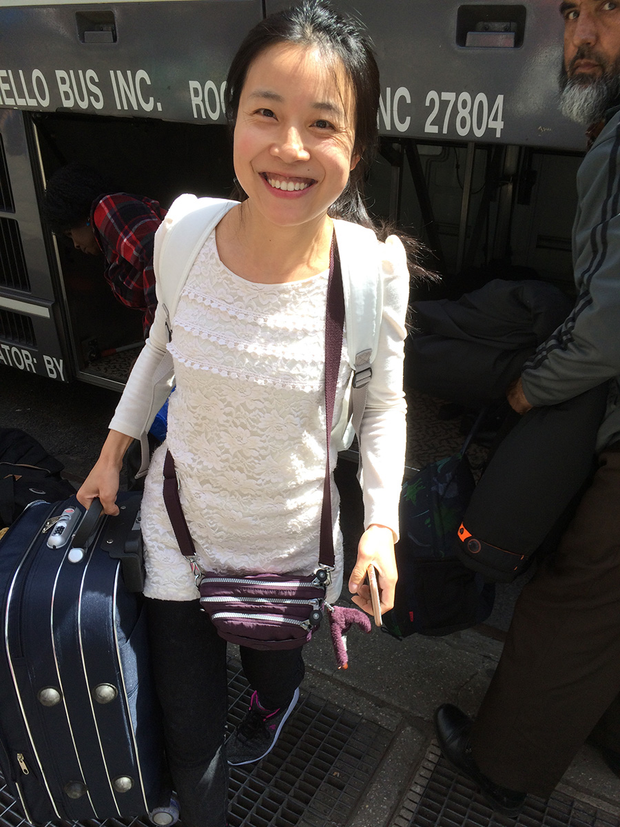 i thought wangyang's bus leaving washington dc to new york city was at 7am, that's why i texted her at 6am. she texted back at 6:30am saying she was just waking up. i got my a little nervous because i thought she was cutting it close. i texted her a few more times as we approached 7am. she wrote back at 7:18am to let me know she was leaving the hotel now. now? i wrote her back saying wasn't her bus at 7am, but while i was typing it i realized it might've been 8am instead.