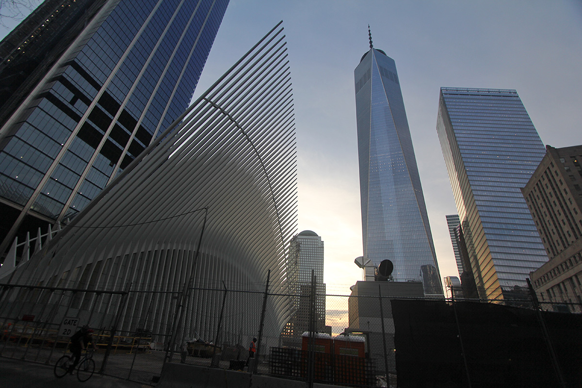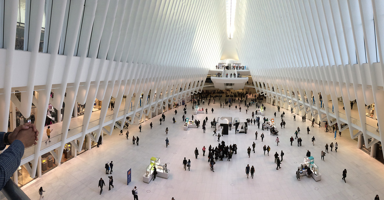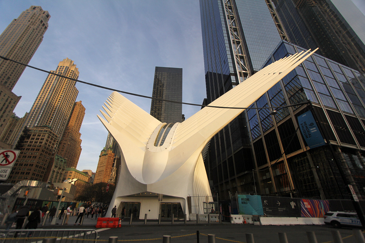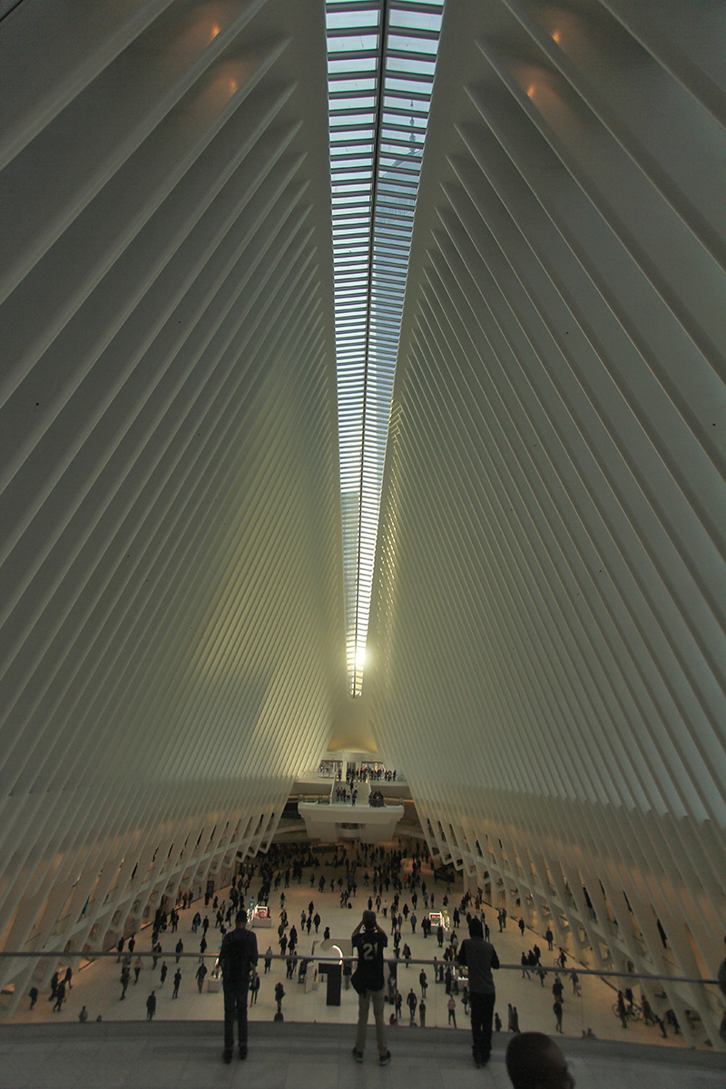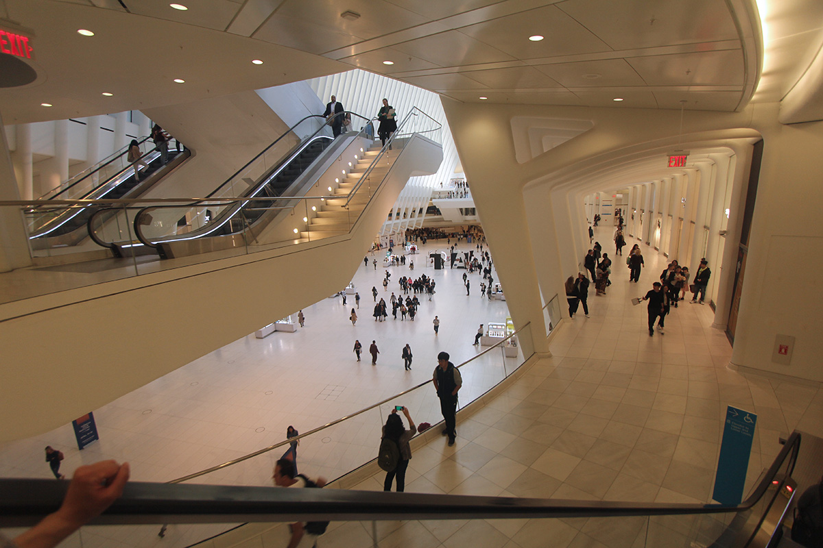 next we headed in the direction of the 9/11 memorial. along the way we stopped off at 4 world trade center to use the bathroom and took a quick browse of the high end italian food at downtown eataly. approaching the memorial, we decided to go checkout the large white spaceship structure. i've seen it before, and thought it was an extension of the memorial museum, but turns out it's actually a large spacious indoor underground high-end shopping plaza - the westfield world trade center. we visited the apple store there, which actually covered two levels.