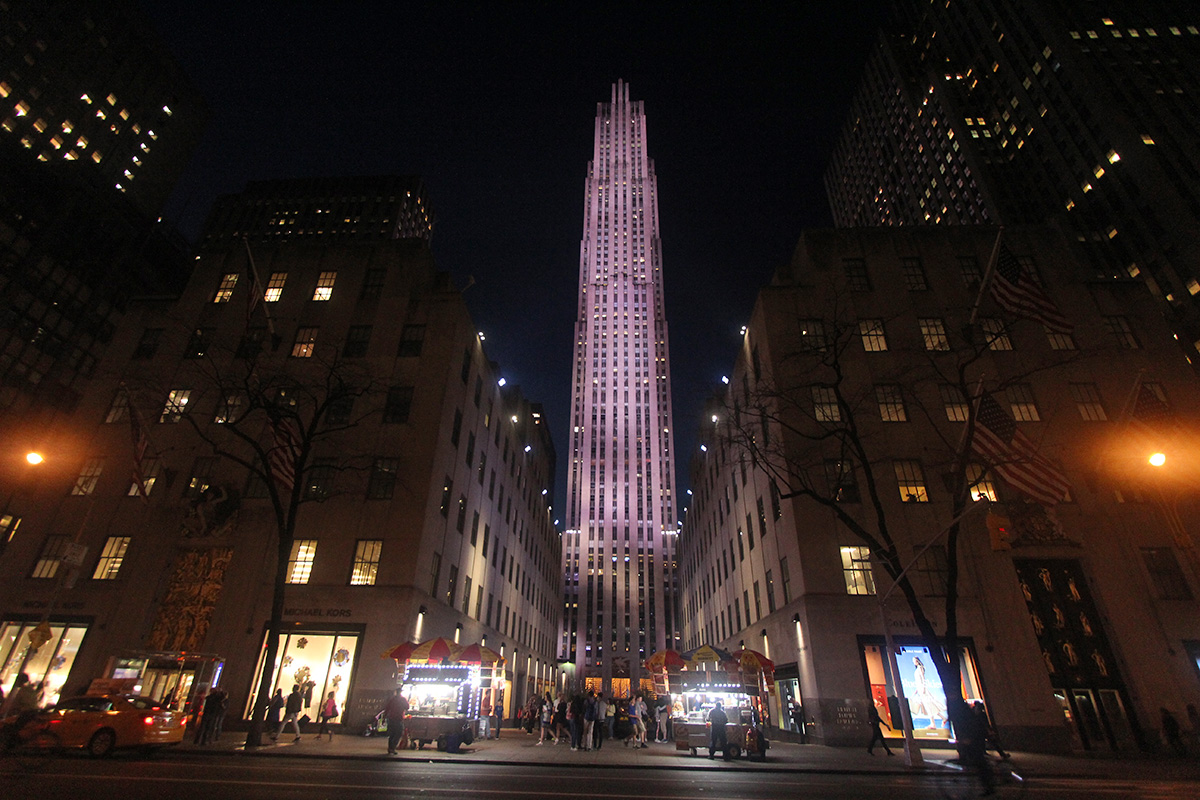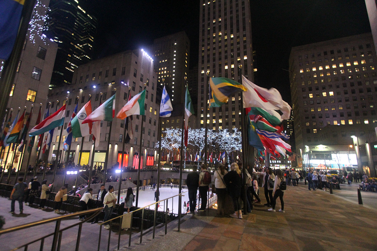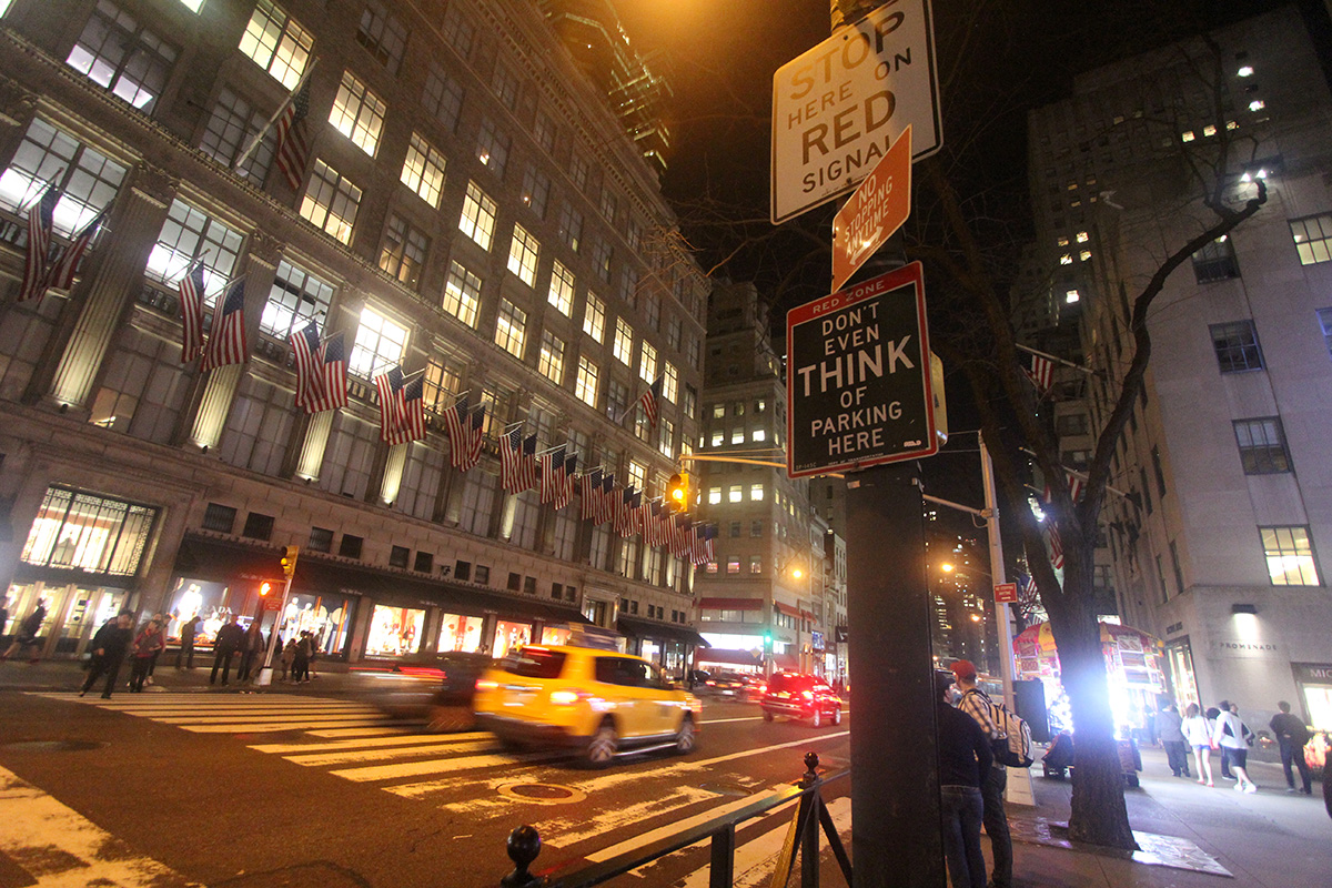 after we left the cathedral we went back to sak's 5th avenue. before we went inside, we bought a pair of hot dogs ($3/each) and ate them while leaning against the department store, staring at 30 rockefeller center across the street. it was wangyang's first new york city hot dog experience. i was too hungry to take a photo of this historical occasion, as i quickly downed my meal. it was a bit after 8pm and we hadn't eaten since flushing. that's one of my problems when i play tour guide: often times i'm so busy visiting one sightseeing place after another, i frequently neglect to eat until my guest and i are nearly exhausted.