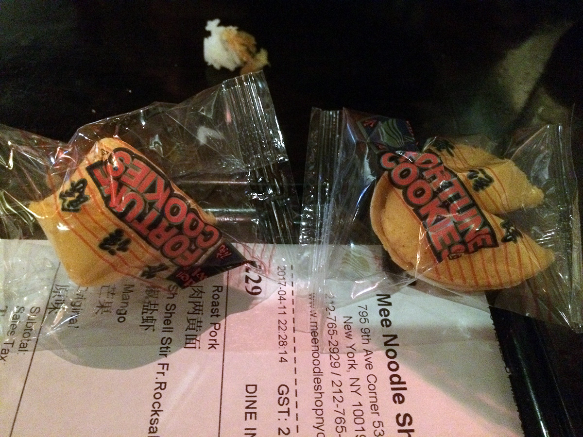 when the check came, wangyang saw a fortune cookie for the very first time. she thought it was just a simply dessert cracker until i told her there was a fortune inside. it surprised her, but i don't think she realizes that all american chinese restaurants do this. wangyang paid with her credit card because she didn't have a lot of cash left (not after spending all her dollars at the GNC vitamin shop earlier). i insisted on paying her but she was having none of it (i would later sneak the money with her belongings back at the hotel).