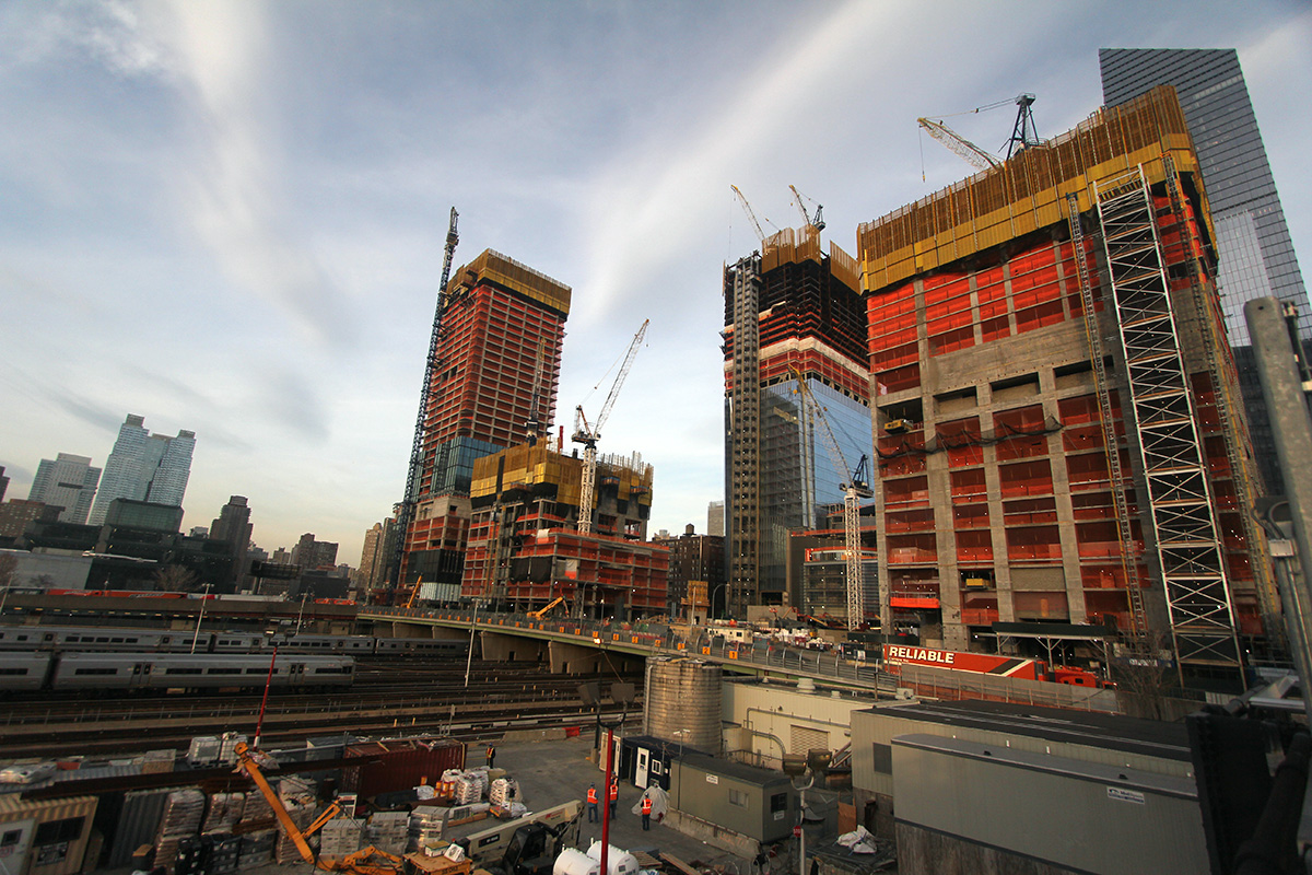we walked the whole 1.45 mile (2.33 km) length of the high line. there was a gang of adolescent hooligans trampling through the manicured gardens, throwing gravel down into the streets belong, and some more young hooligan activities. i bumped shoulder with one of them, and a few minutes later i heard some rocks clattering nearby, a possibly retaliation. later i saw a ranger asking them not to run through the plants, but she didn't kick them out. before we started walking wangyang had asked if there was any bathrooms. at 16th street there was a public bathroom, but there was a line of people waiting to get in. wangyang said she could hold it (in hindsight, there was another bathroom at the gansevoort entrance we came up from, but i didn't see it at the time). at the 30th street bend we entered an office building to ask if they had a bathroom. the security guard behind the desk - who must get asked this several times a day - said nothing at first then listlessly answered no. we continued walking around hudson yards until we arrived at the terminal station, where i knew there would be a bathroom inside the station.