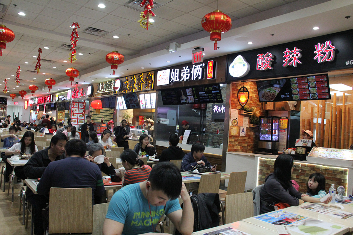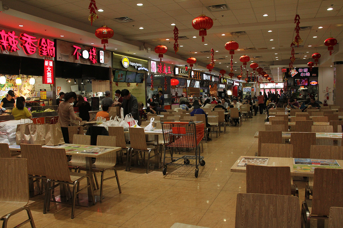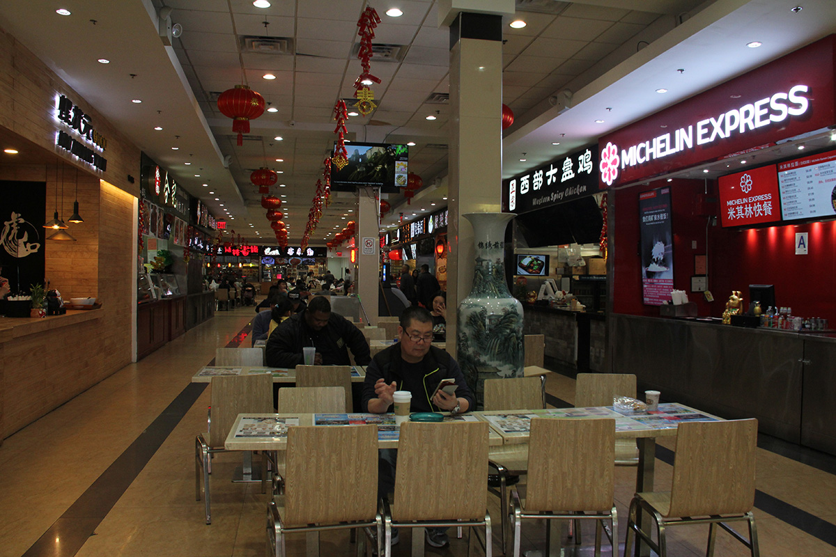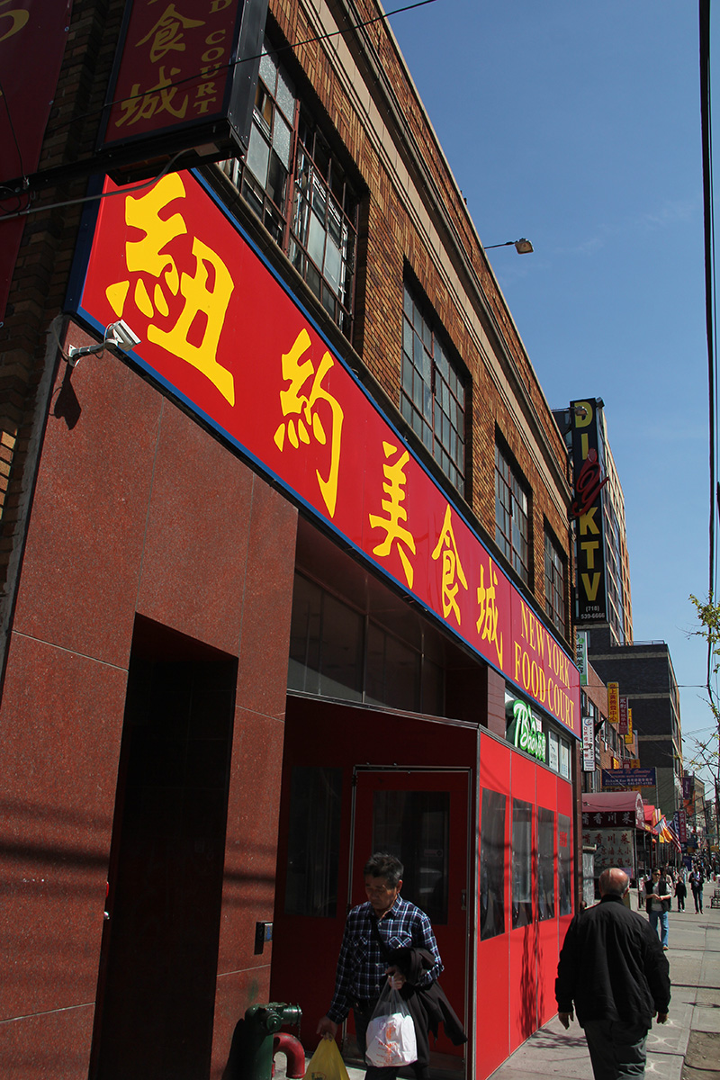 we headed in the direction of the skyview mall on roosevelt street. i've never gone this way before, and noticed a bunch of really interesting chinese restaurants. everything was going normal until we passed by a large nondescript brick building. the large sign said new york food court (ç´ç´„美食城, 133-35 roosevelt avenue) and when i peered through the draft barrier portal i couldn't really see inside, but i was intrigued, and asked wangyang if we could stop and check it out briefly.