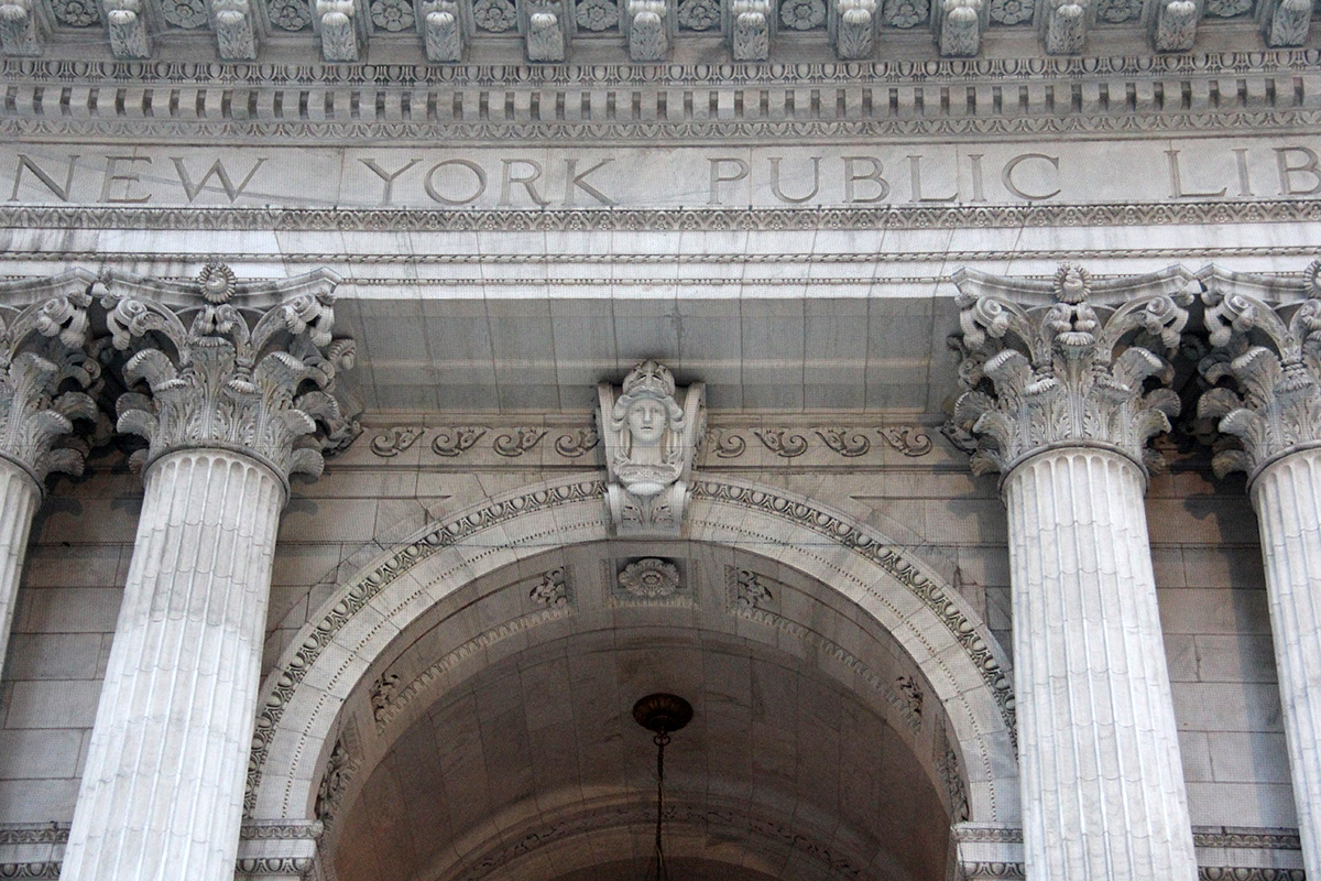 before walking up 5th avenue, i asked wangyang if she'd be interested in seeing the new york public library, adding that it was a famous landmark and featured in such fine films as ghostbusters (1984). so we made a quick detour to see this building which was just nearby.