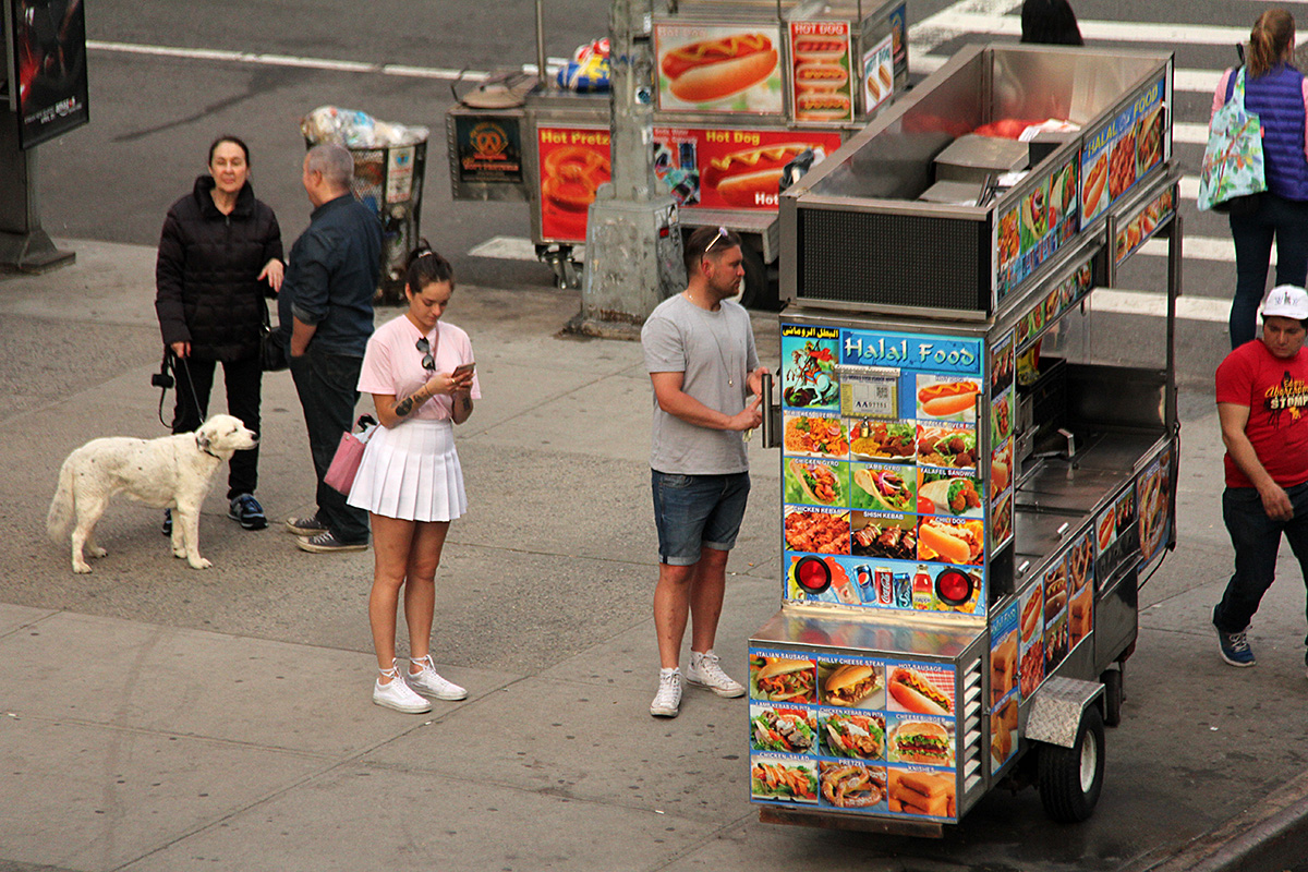 the probably with being on 5th avenue is most nearby restaurants are of the expensive kind. if we kept going west we'd hit the swath of restaurants clustered around time square, and those weren't any good either, typical tourist traps. our best bet for something cheap yet delicious was if we kept on going, all the way to 9th avenue, to hell's kitchen. wangyang's never had greek food before, and i found a place with good reviews, uncle nick's (747 9th avenue). it'd be another 20 minute walk, but in my mind it seemed closer than that.