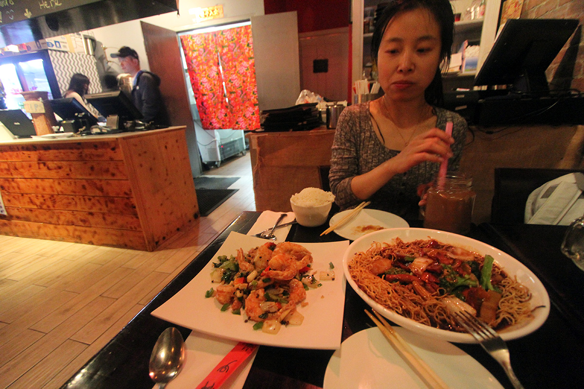 when the noodles came and wangyang tried it for the very first time, the noises she made sounded like she didn't like it, but turns out she had the opposite reaction, said it was delicious. i told her pan fried is my favorite style of noodles at chinese restaurants, and would sometimes special order it if they didn't have it on the menu. the rocksalt shrimp was also quite delicious, although i was expecting more shrimp (the portion was good though, i don't think i could've eaten any more). i ate quickly, mindful of their closing time, even though there were many other customers still around.