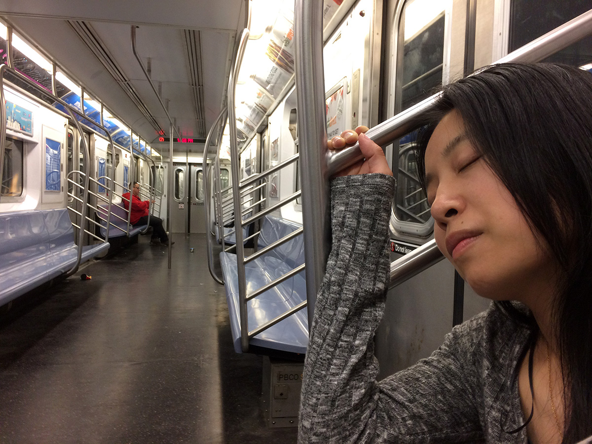 wangyang was itching for some bubble ice tea. she thought i'd never had it before but i told her bubble ice tea was invented in taiwan, and i've had it millions of times, both in taiwan, in china, and elsewhere. we kept seeing coco, which is a china franchise, but she wanted to try a different place if possible. but we couldn't find anywhere else so we ended up getting bubble ice tea from the street corner outside the subway station (wangyang treated). down in the main street station wangyang charged up her metrocard as the day pass had already expired. we got onboard and began our long ride into manhattan at 4:22pm.