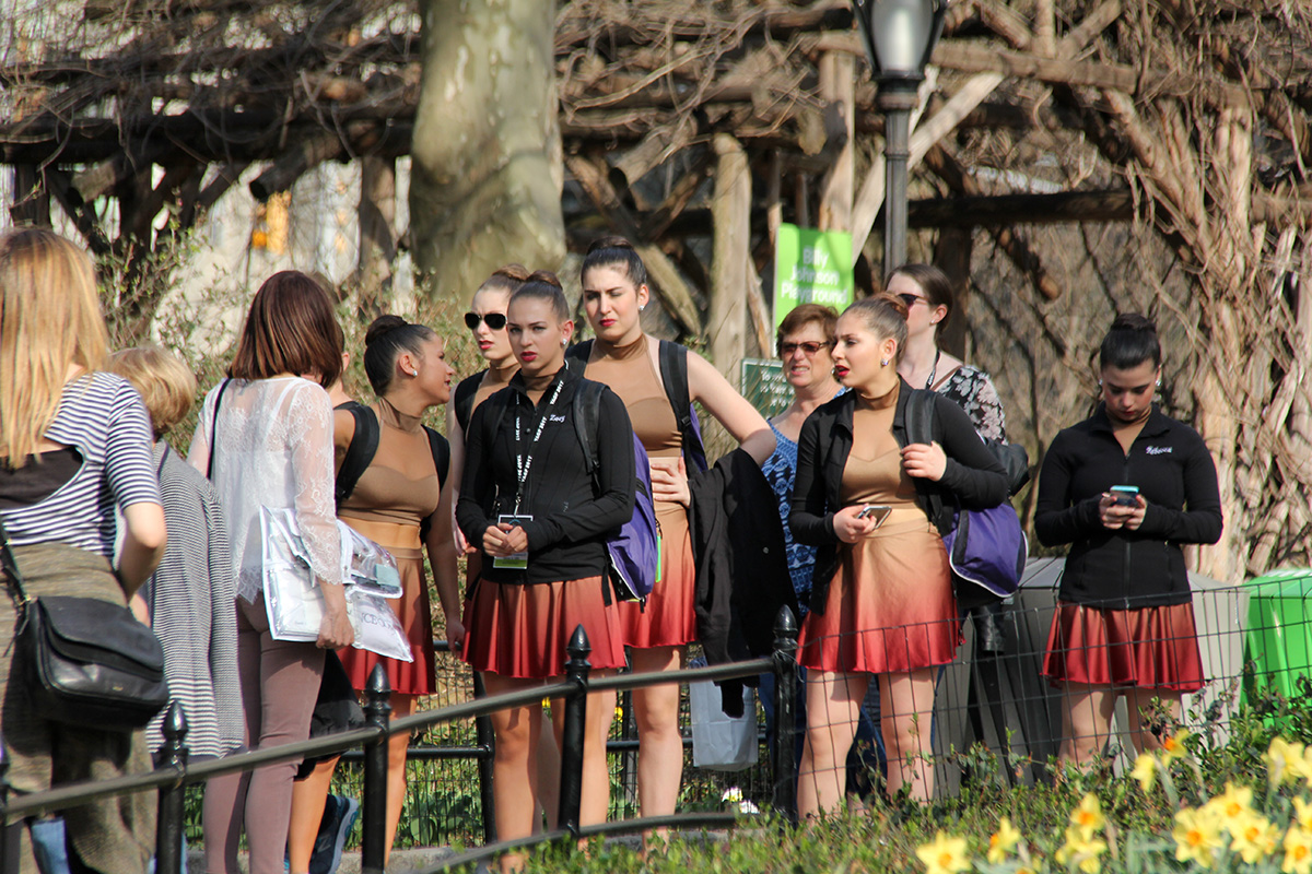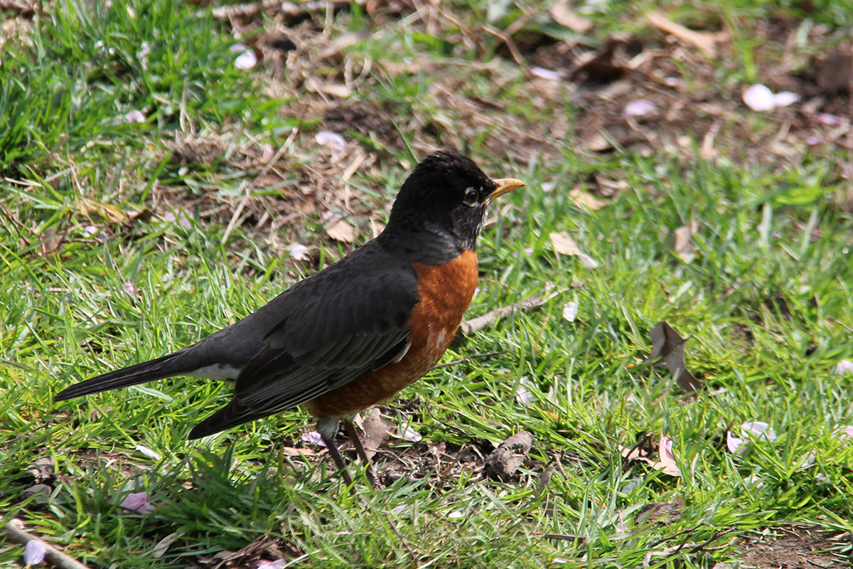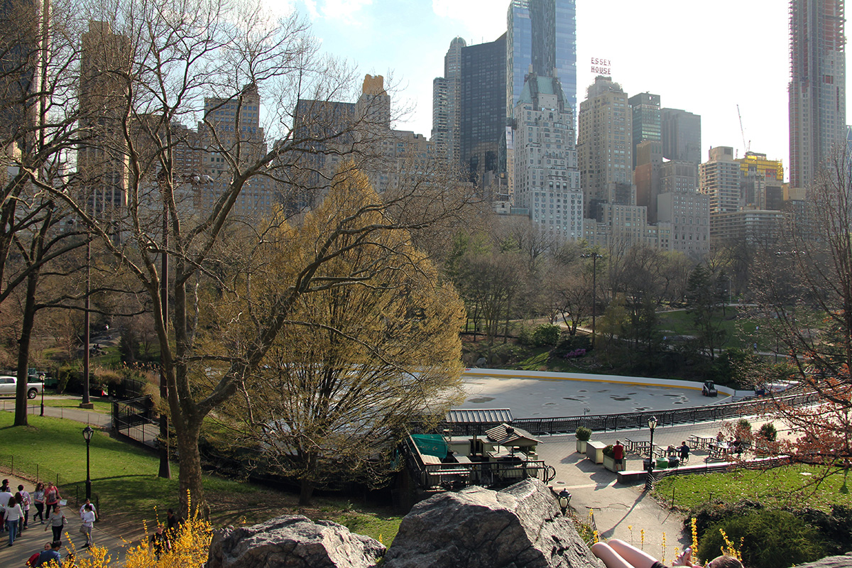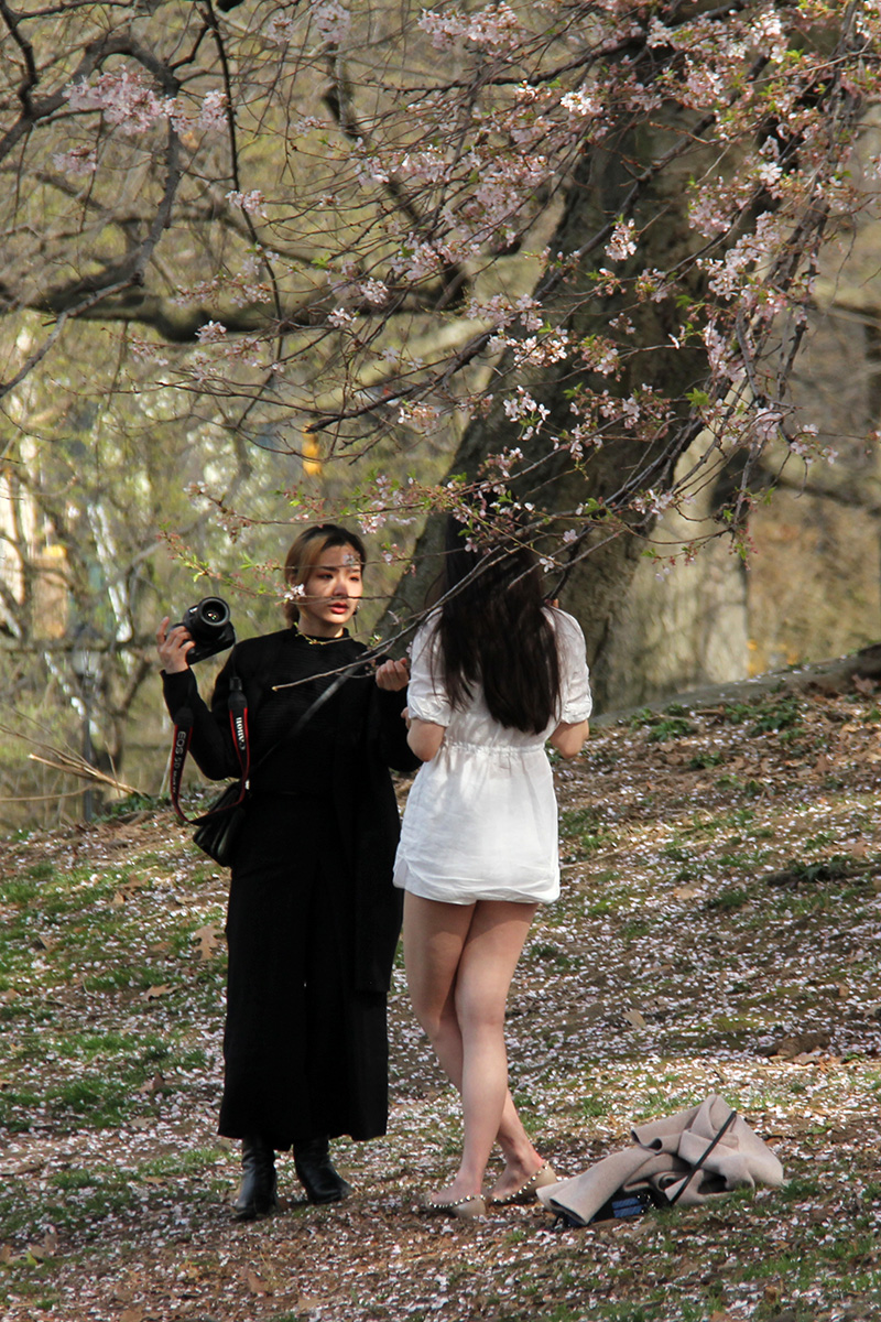 we then returned to central park to take a leisurely stroll and enjoy the nice spring day. we ended up going from 79th street all the way down to 59th street. i carried the box of unfinished potato fries and ate while we walked. i was hoping to impress wangyang with some unique indigenous birds (like cardinals or bluejays) but the only birds we saw were robins, grackles, and sparrows. here and there cherry blossoms were in bloom.