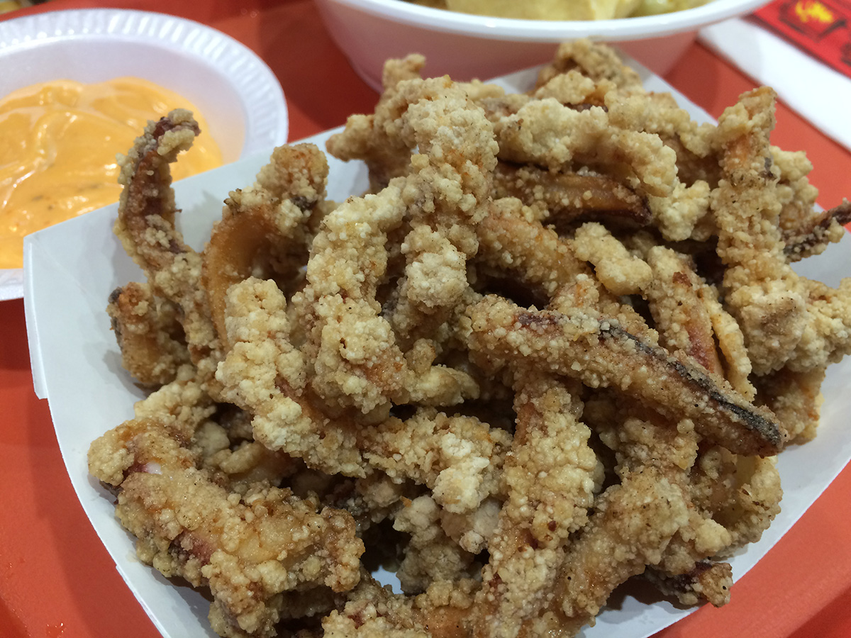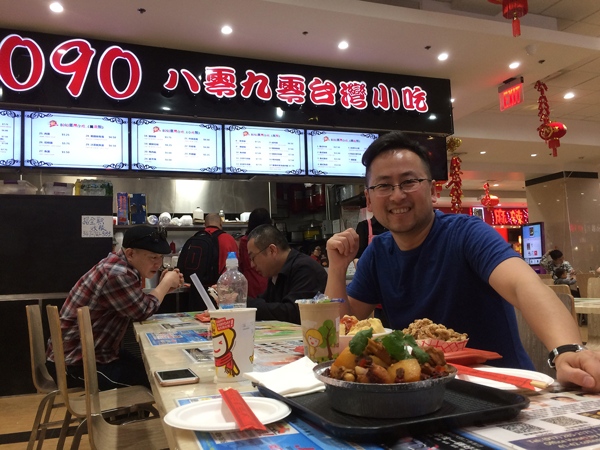 there was little doubt we'd be returning to new york food court for dinner. it was a little selfishness on my part because i wanted to eat some taiwanese food one last time before i left new york. taking a chinese person to go eat chinese food while she's visiting the US for the first time seems like a waste of a perfectly good food eating opportunity. next time i take somebody on a tour, i should put as much emphasis on the food venue as well as the general sightseeing, especially since i'm such a big food guy myself. but for me, new york food court was dining heaven. wangyang got an order of dapanji (大盘鸡) and went in search of bubble ice tea. i got the taiwanese stinky tofu (炸è‡è±†è… $6) and a plate of fried squids (é¹½é…¥èŠ±æž $6.25). i ate quickly after discovering the place closes at 9:30pm (actually more like 10pm, since there were still plenty of people eating after that time). i ate so much, i could finish the last bite of tofu or fried squid. we finally left there by 9:50pm.