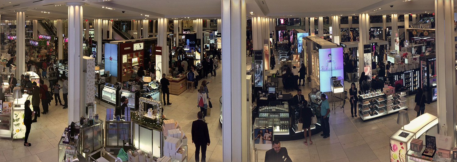 when we arrived at herald square, the subway station opened out onto a jc penney's, so we went in looking for a bathroom. after a fruitless search, we found our way outside. we then looked for souvenir shops. the prices at the first place we visited weren't very good, so i suggested we look elsewhere. we finally went to macy's, and went into the basement level where the bathrooms were. they'd done some renovations since the last time i was here, and we searched everywhere and couldn't find a bathroom, until we finally asked somebody. even then, it was only the women's bathroom. we split up as i continued looking for the men's bathroom until i finally found it.