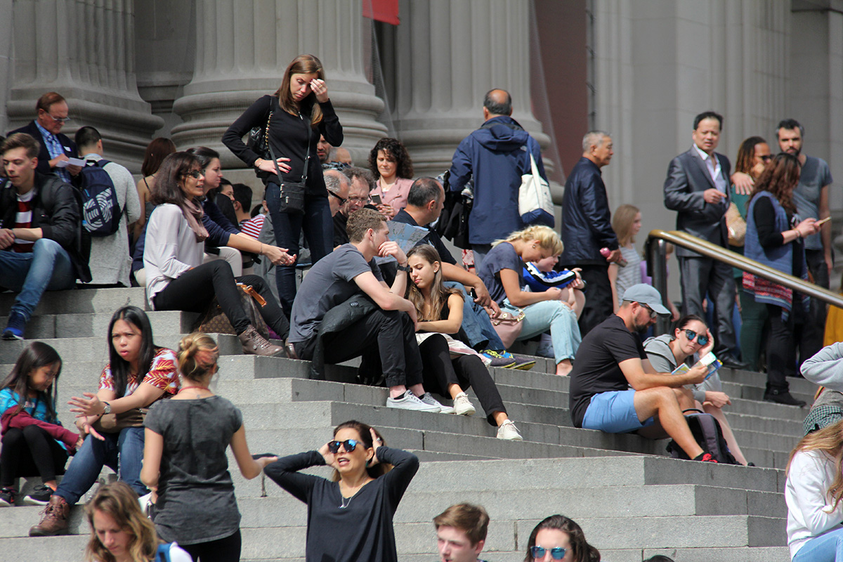 it was 10:30am and a line of people were waiting outside; this must've been a crowd control measure, since the museum was already opened. after a few minutes of waiting, the line started to move and we were ushered into the building, our bags checked for security purposes. wangyang used the city pass ticket (given to her by the chinese girl she met in washington dc) to pay for her admission; the girl behind the desk was confused since you can get into the museum for free, and a city pass can be used for something else (like a ferry ride or the empire state building observation deck), but finally she accepted it. i didn't want to be a complete freeloader so i paid $5 for my admission ticket.