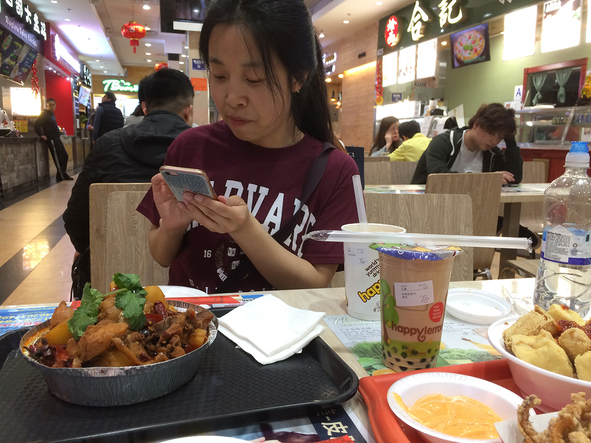 wangyang was at the apple store to buy an ipad for her son. she was thinking about the apple mini, but i pushed her to get the newly released 2017 ipad, which is a better deal in terms of what you get for the price ($329). they were so busy, we couldn't find anyone to help us, until a worker there told us to go talk to one of the greeters by the entrance, who took wangyang's name and asked us to wait briefly so they could get a store employee to come help us. moments later a friendly young man came by and brought us to the ipad display table. he asked us what model she were interested in, how large the memory, and what color (grey, gold, silver - wangyang picked silver). then he left to go get the order. when he came back, he made sure this was the model she wanted, then took out a portable credit card scanner so wangyang could pay.