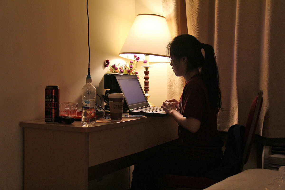 since we weren't able to go to a bar, i suggested the next best thing: get some drinks from a liquor store and go back to the hotel. i saw one earlier and paid the place a visit, but they sold mostly hard liquor (as is the chinese style) and i was searching for hard apple cider, something that wangyang never had before. 20 minutes later of searching (it was also a bit windy and cold this evening, and we were both only wearing t-shirts) we were back at the hotel. i asked the desk man where we could find alcohol. he said the super market a few blocks down had "western alcohol." we went back upstairs to put on our jackets before one final round of new york adventure.