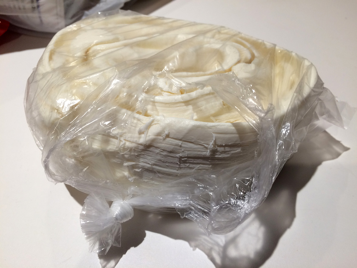 my sister and her dog showed up briefly in the late afternoon before leaving. after dinner i biked back to cambridge. the house was empty, not sure where karen went, but it gave me enough time to use the bathroom and take a shower. she came back around 8:30pm, having gone with her friend paula to a mexican grocery store in lynn, where she got me a ball of authentic oaxaca ("wa-HA-ka") cheese. i've had the cheese before but this time i could really savor it. it's chewy and stringy like mozzarella, but has a distinctive mild milk or butter flavor. when torn into slices, it resembles chicken. karen said you can just eat it raw as a snack, or melted on a sandwich, and that it also goes along well with grapes.