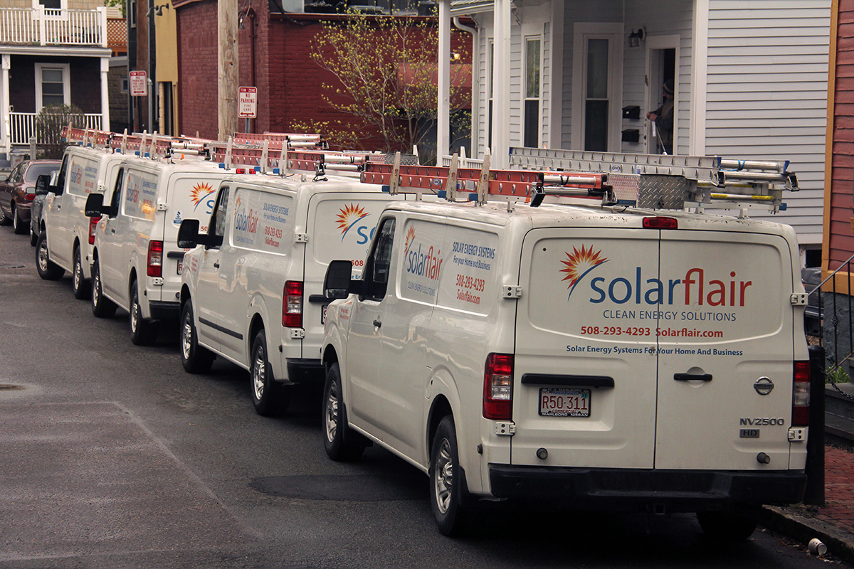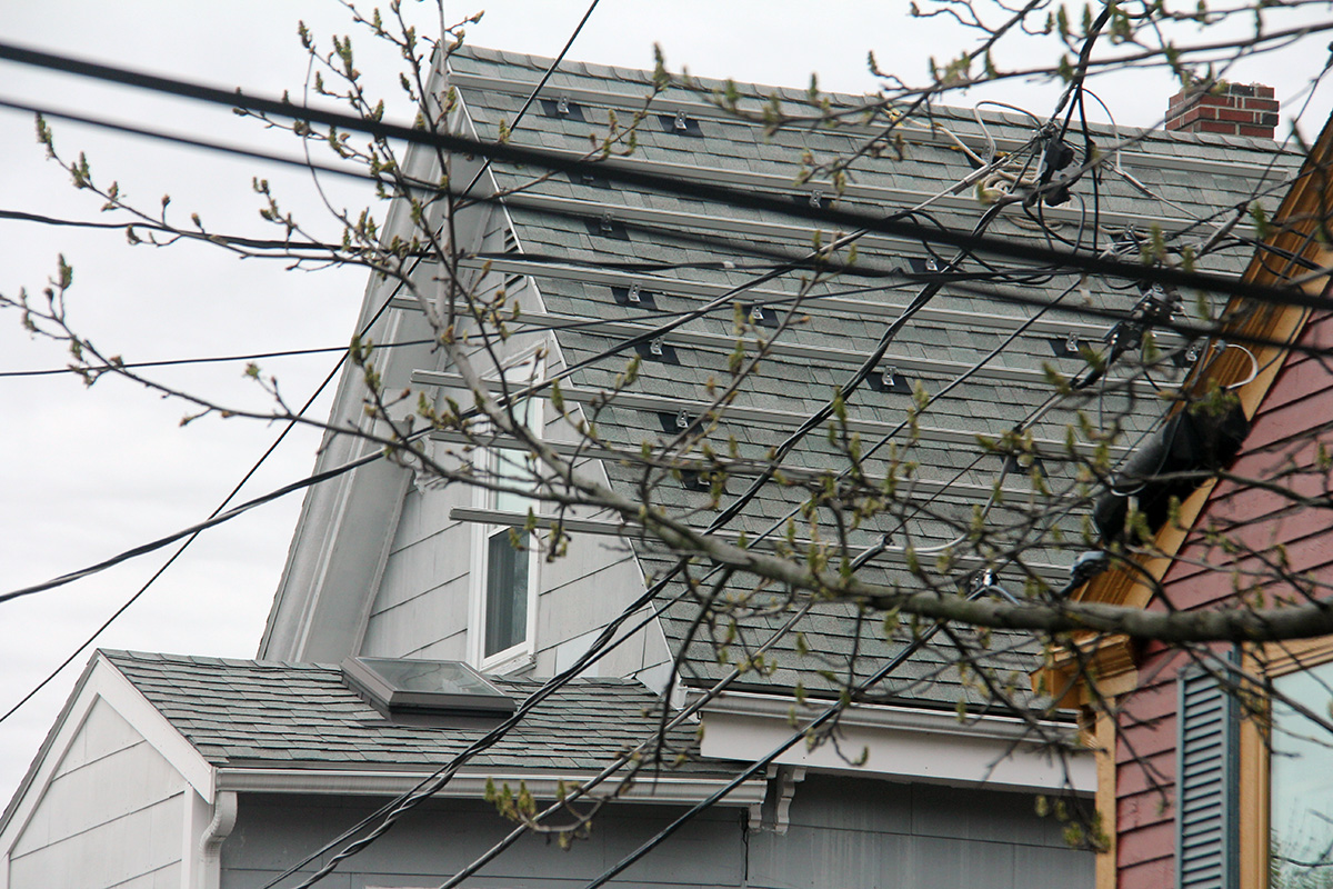 the solar installation company were back again today, this time with a convoy of 4 parked vans along the street. i didn't check their progress last night but saw this morning that they seemed to have finished mounting the frames but no panel work yet. it was supposed to rain something fierce today so not sure why there were even more people today than yesterday, since they couldn't do any outdoor work. the frames are a little weird, they sort of stick out beyond the edge of the roof; maybe they're get trimmed, or maybe it's a way to extend the number of installed panels.