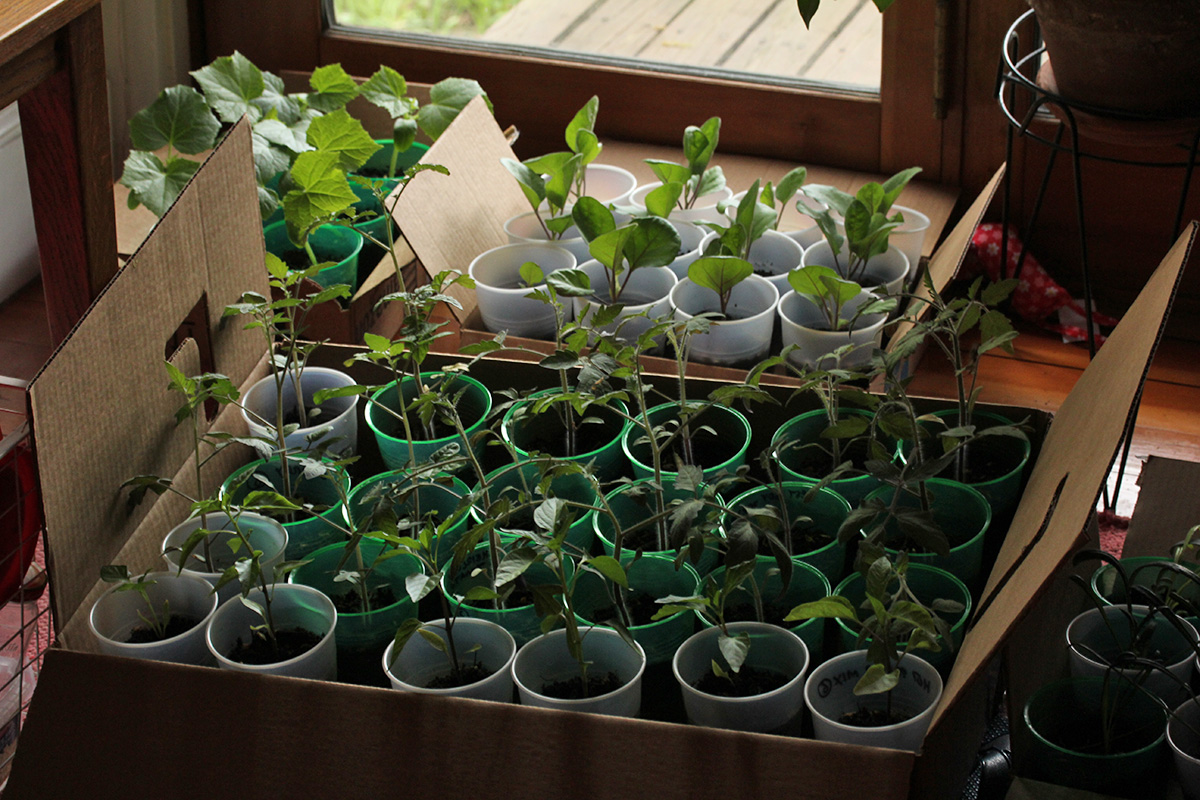 karen left for work (via bike) at 10am this morning, in what is now the new normal. i was simply glad she was leaving; i've had roommates in the past (ana, crazy mary) who've decided they weren't going to go to work/class, which messes with my schedule. i put out some plants but because the temperature was only in the lower 50's, i only set out the hardier perennials (lupines, mallows), leaving the more tender seedlings indoors by the door so they got at least get a bit of sun.